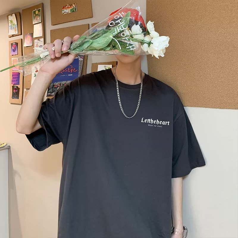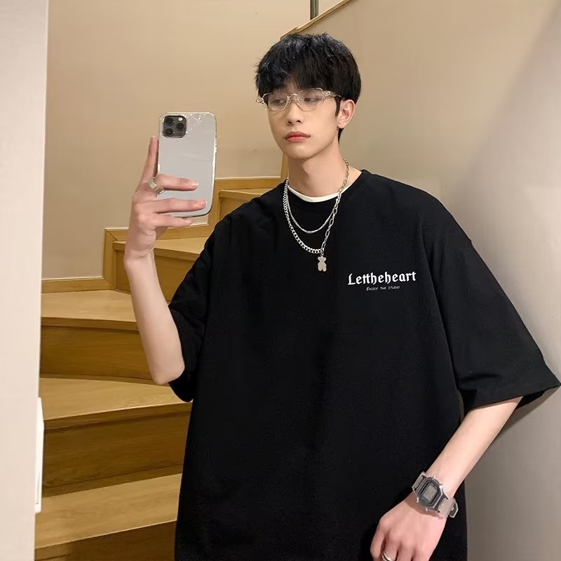 남성용 여름 라운드 넥 반팔 티셔츠 루즈 쿼터 슬리브 인 트렌드 한국 스타일 트렌디 t 홍콩 스타일 탑 커플 바닥 셔츠스토어 가기
