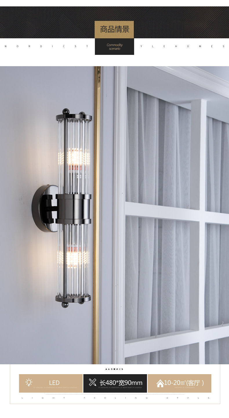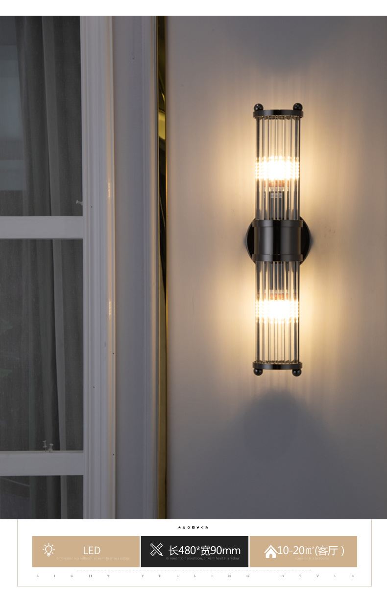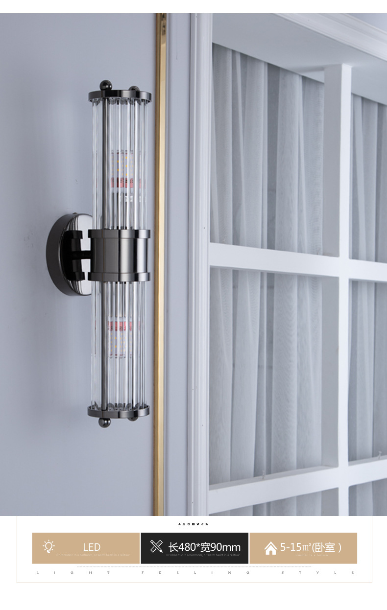 국경 간 미국 복고풍 거실 크리스탈 벽 램프 간단한 현대 침실 머리맡 램프 실내 계단 led 조명