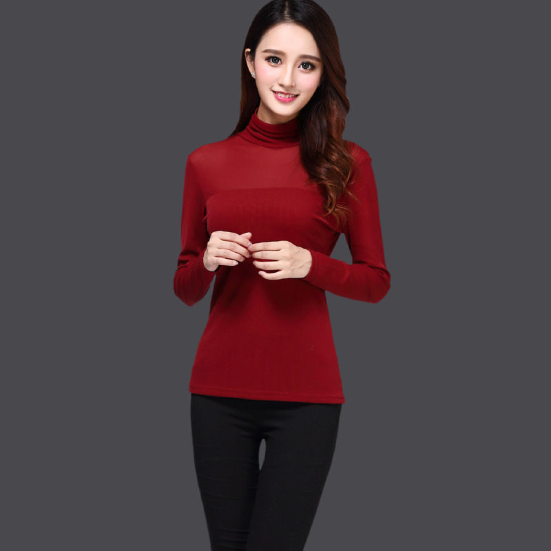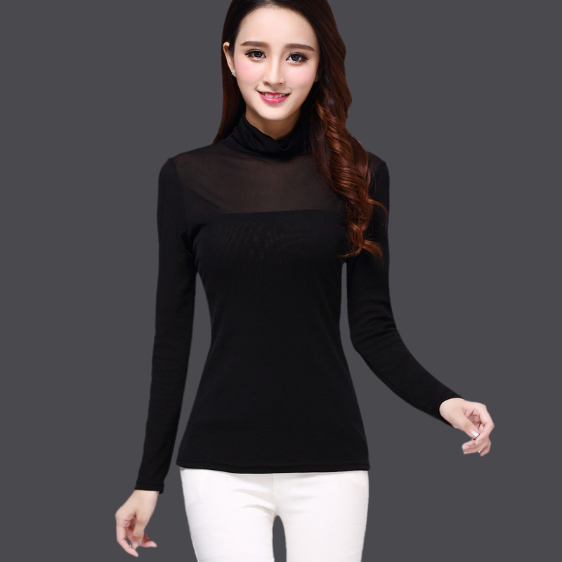 2025 가을 새로운 스타일 터틀넥 바닥 셔츠 메쉬 긴팔 티셔츠 여성 탑 대형 얇은 셔츠 레이스 셔츠 유행스토어 가기