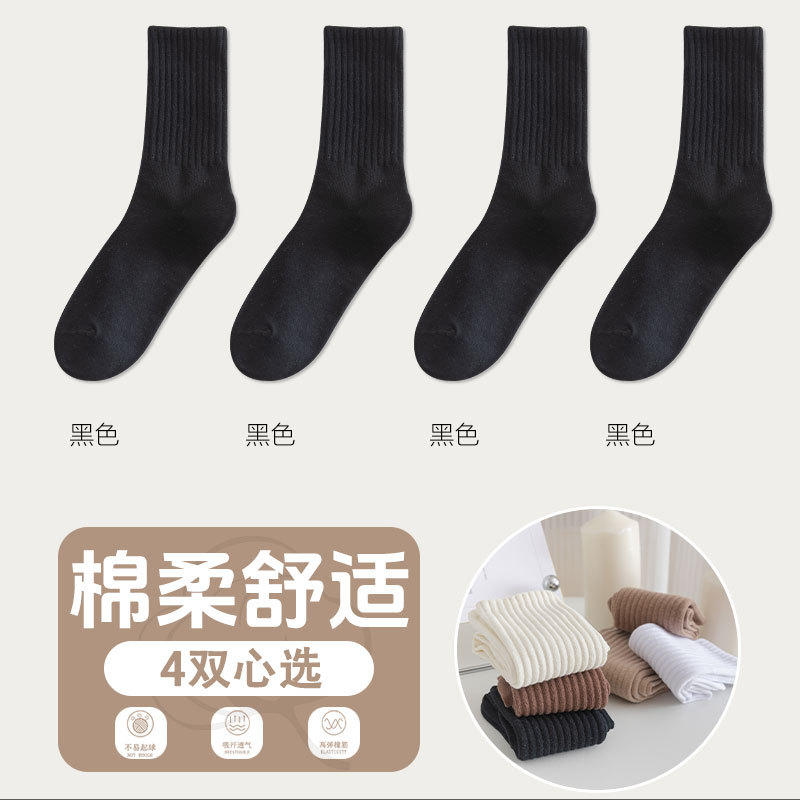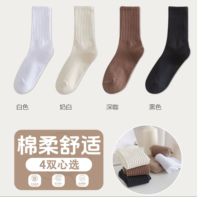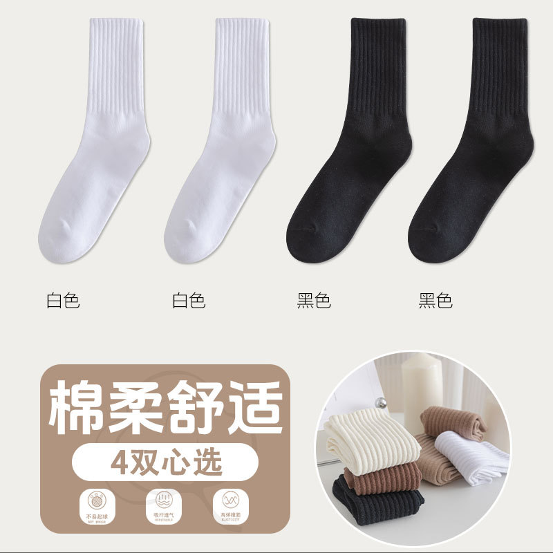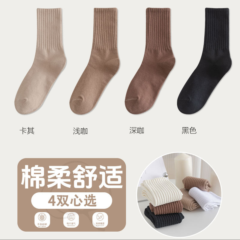 양말 여자의 가을과 겨울 높은 고무 밴드 중간 튜브 양말 일본 스타일 다크 브라운 스타일 긴 튜브 여성의 유행 면 양말 흑백 양말스토어 가기
