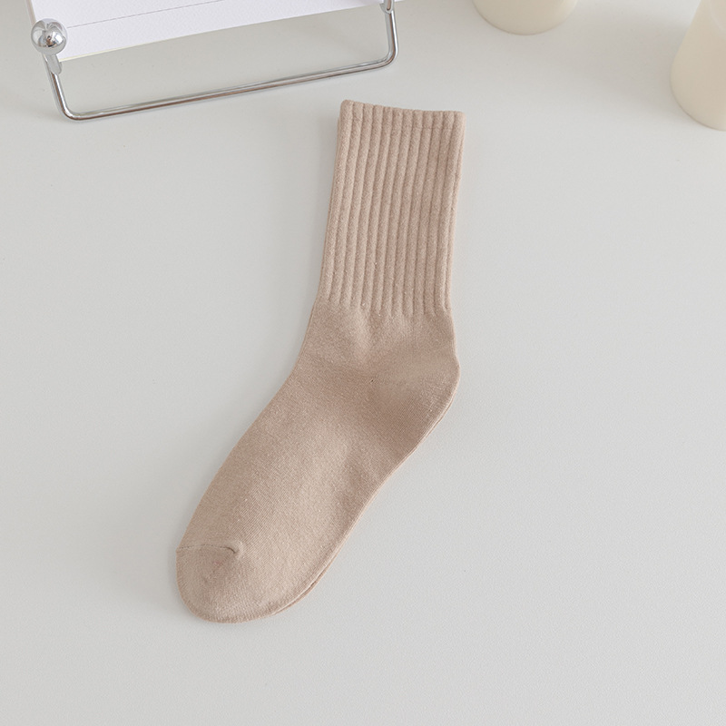 양말 여자의 가을과 겨울 높은 고무 밴드 중간 튜브 양말 일본 스타일 다크 브라운 스타일 긴 튜브 여성의 유행 면 양말 흑백 양말
