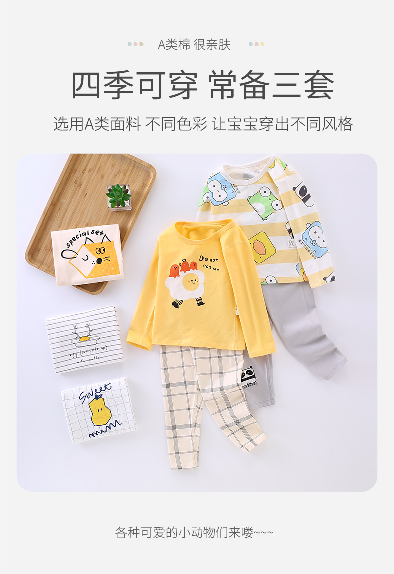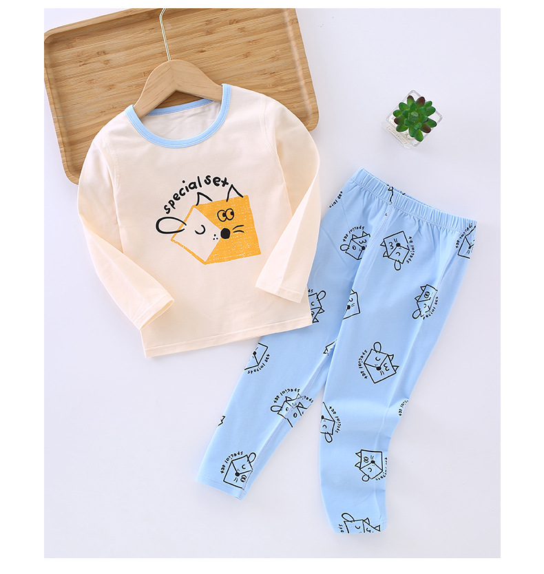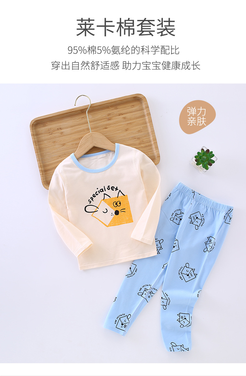 뼈와 가을 세트 어린이 라이크라 속옷 새로운 순수 가을 옷 긴 존스 소형, 중형 및 대형 어린이 의류 면 잠옷 가정 의류스토어 가기