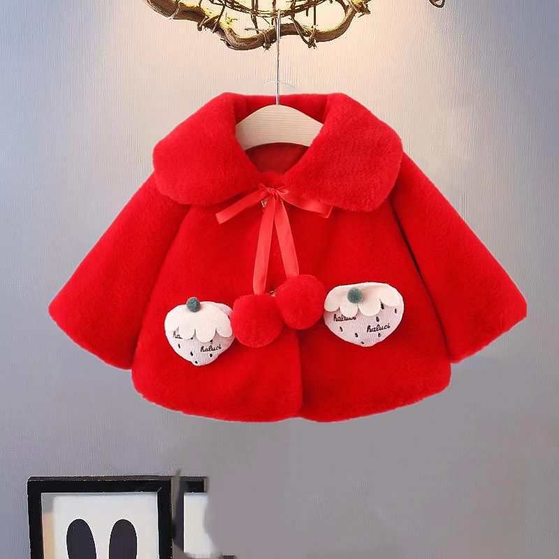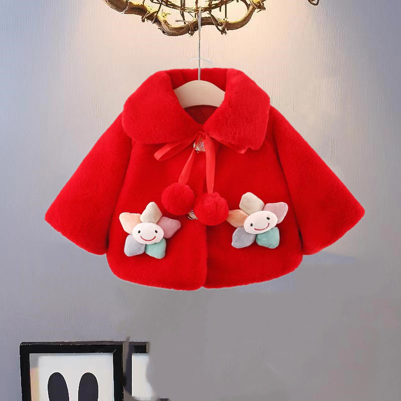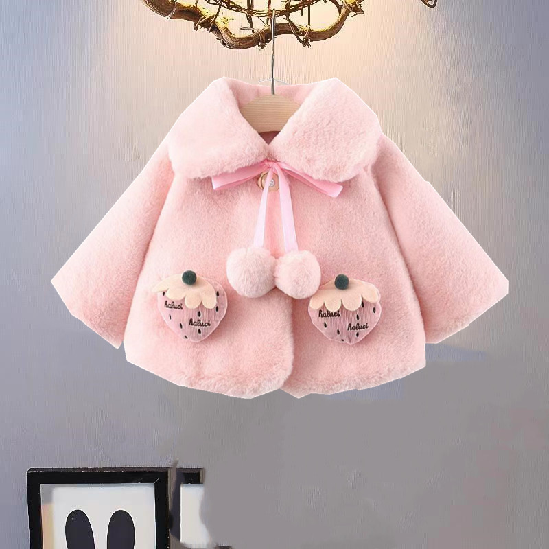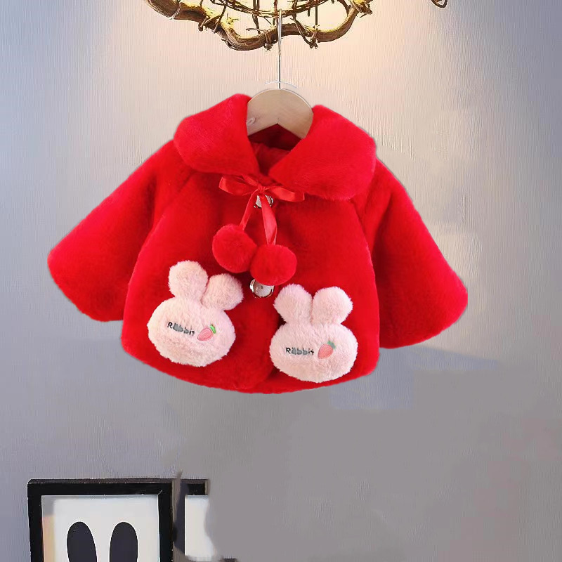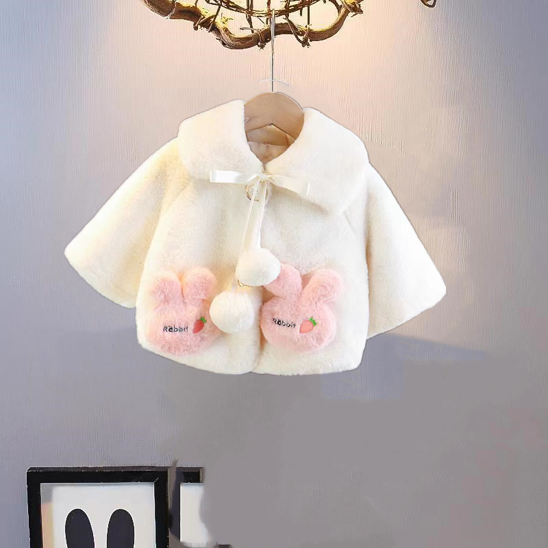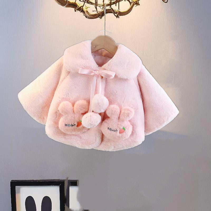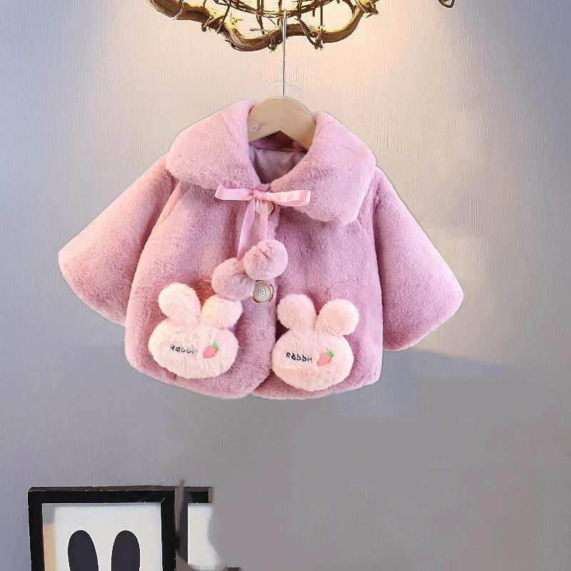 2025 여아 두꺼운 겨울 코트 어린이 서양식 모직 스웨터 소녀의 한국 스타일 유행 모방 토끼 모피 탑스토어 가기