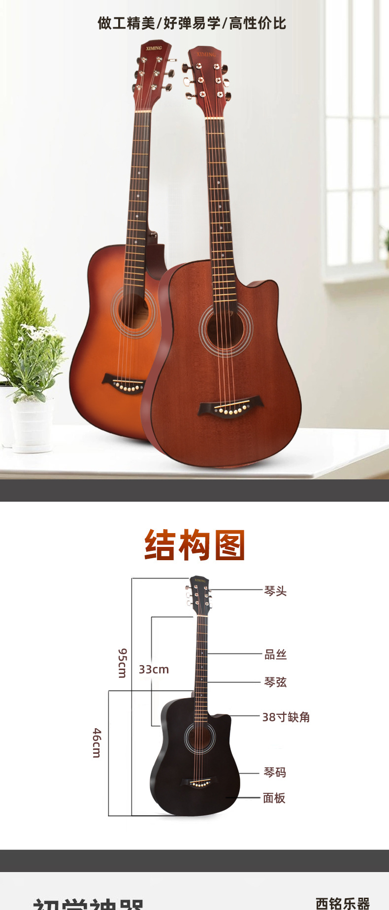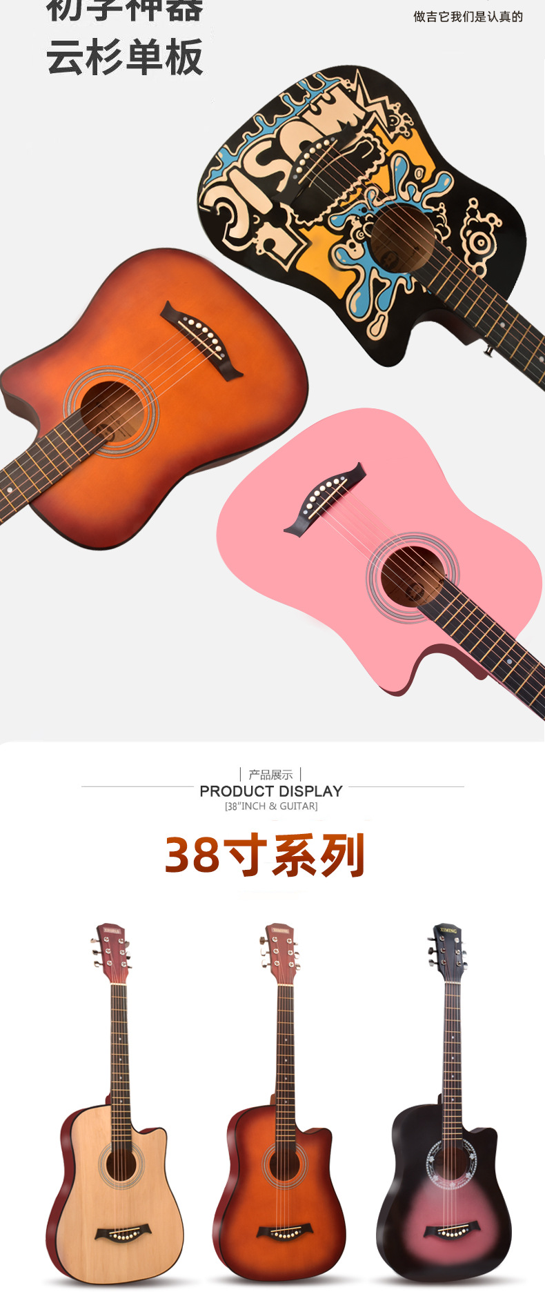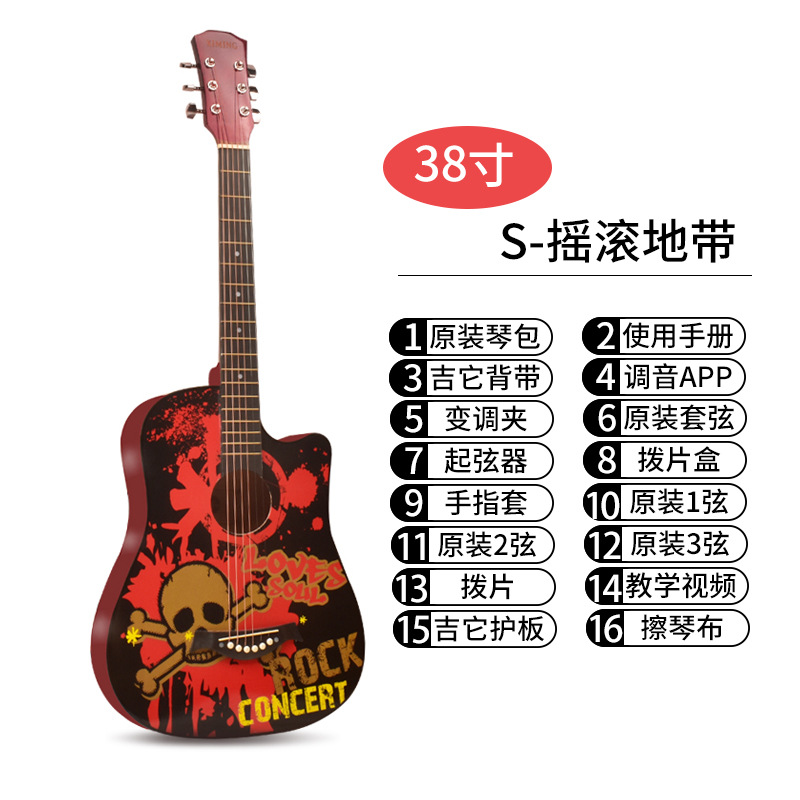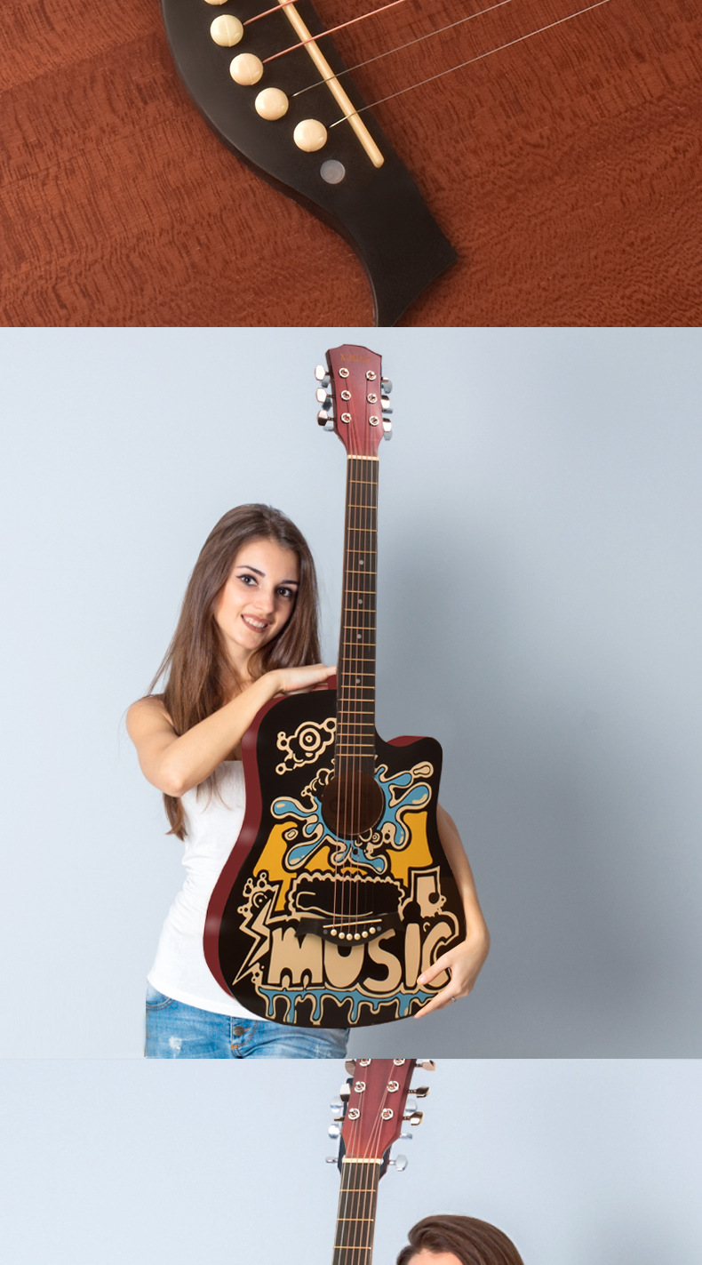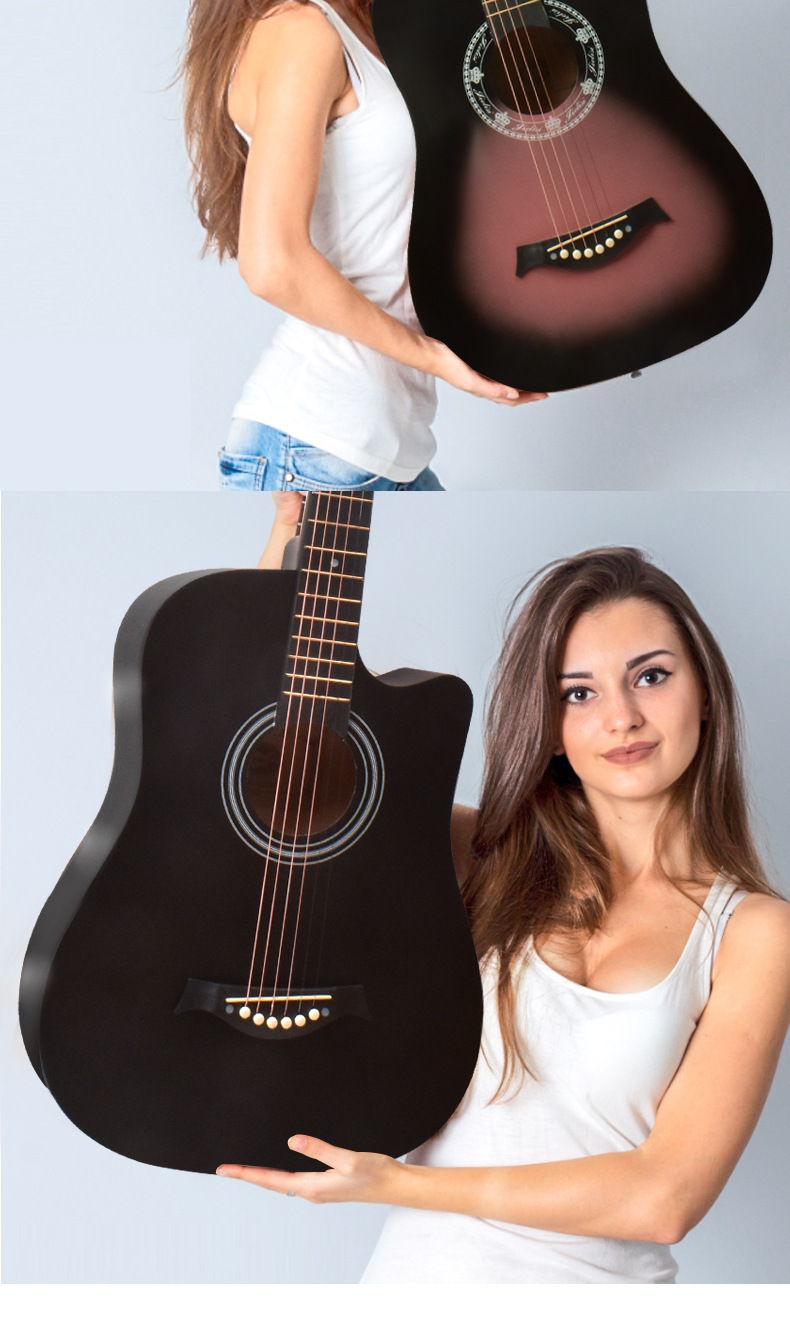 포크 기타 초보자 남녀 학생 연습 38 인치 41 인치 민속 어쿠스틱 기타 초보자 악기스토어 가기