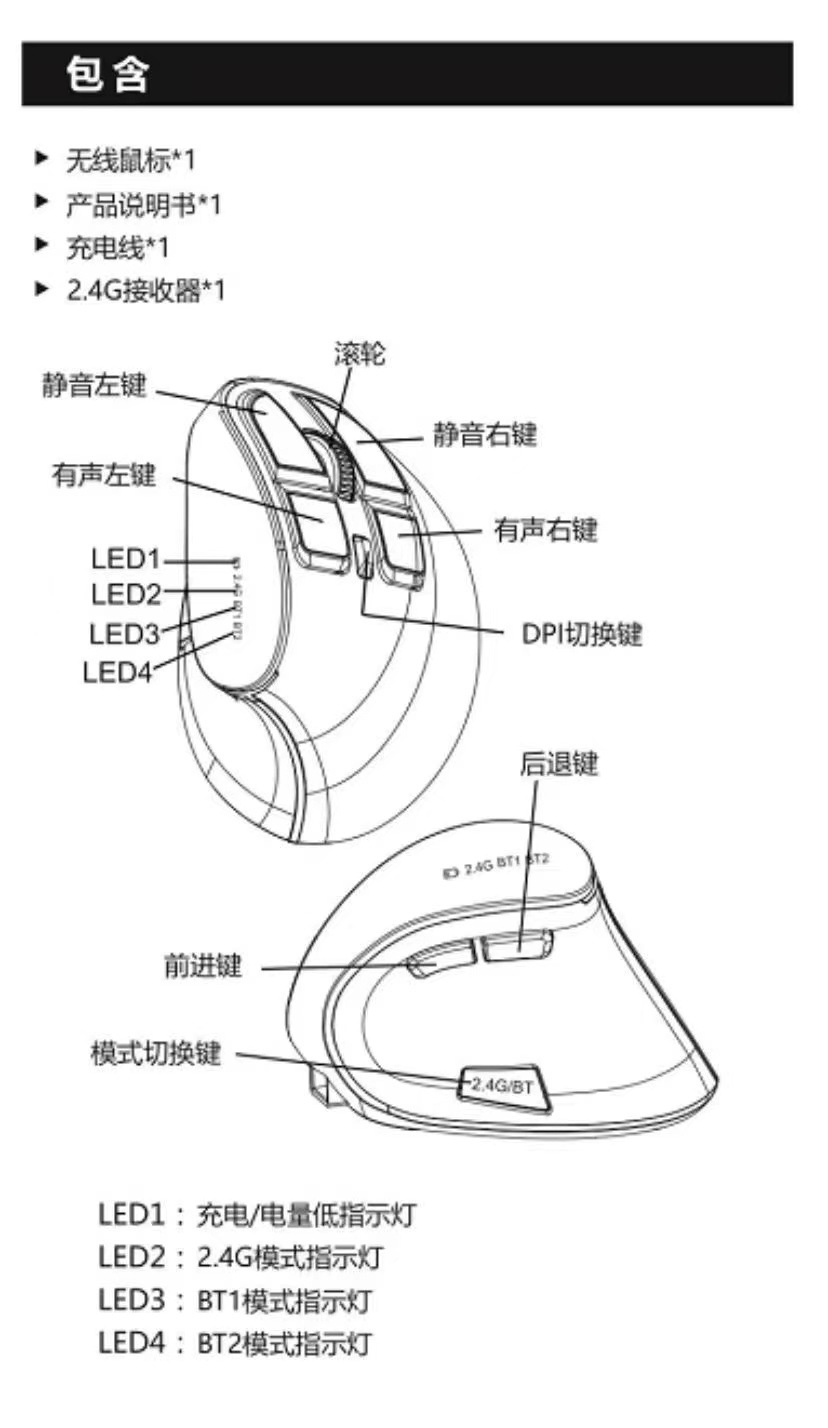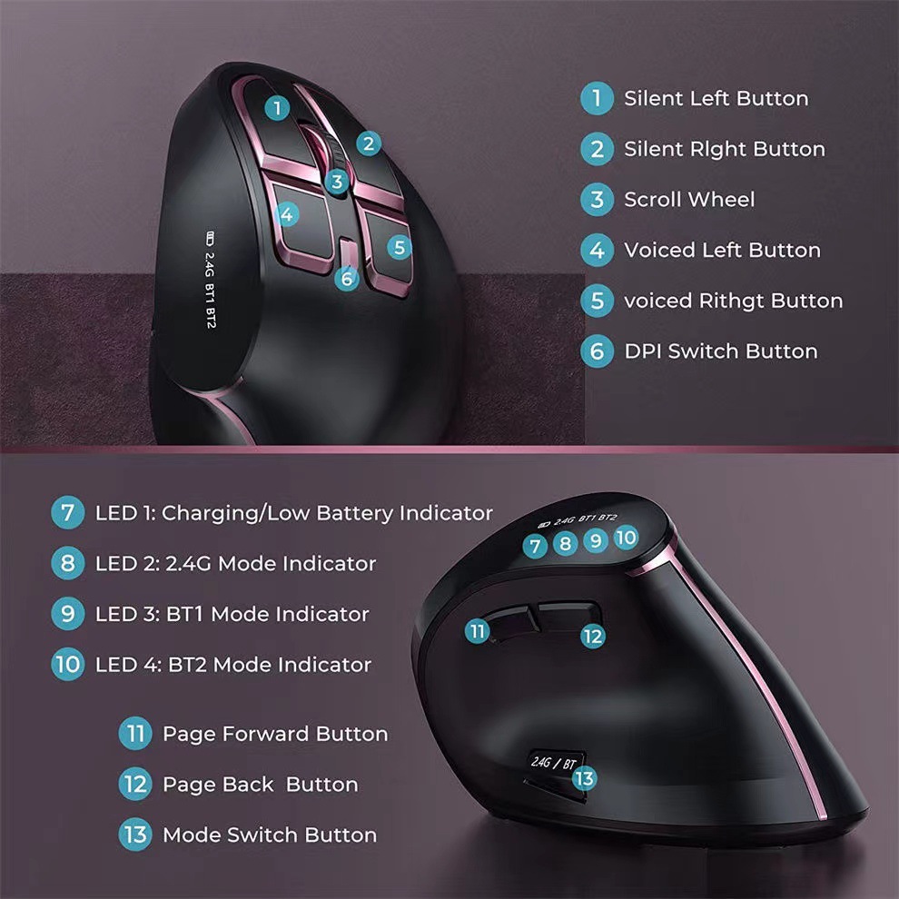 2.4G 무선 블루투스 3 모드 충전 인체 공학 수직 마우스 노트북 데스크탑 컴퓨터 마우스 사무실