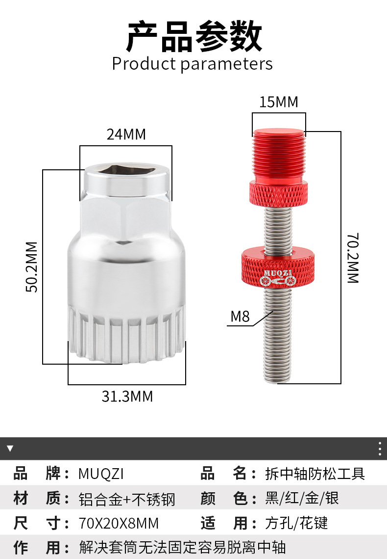 MUQZI 자전거 사각 구멍 스플라인 중간 축 슬리브 고정로드 낙하 방지 나사 보조 자동차 수리 도구 액세서리