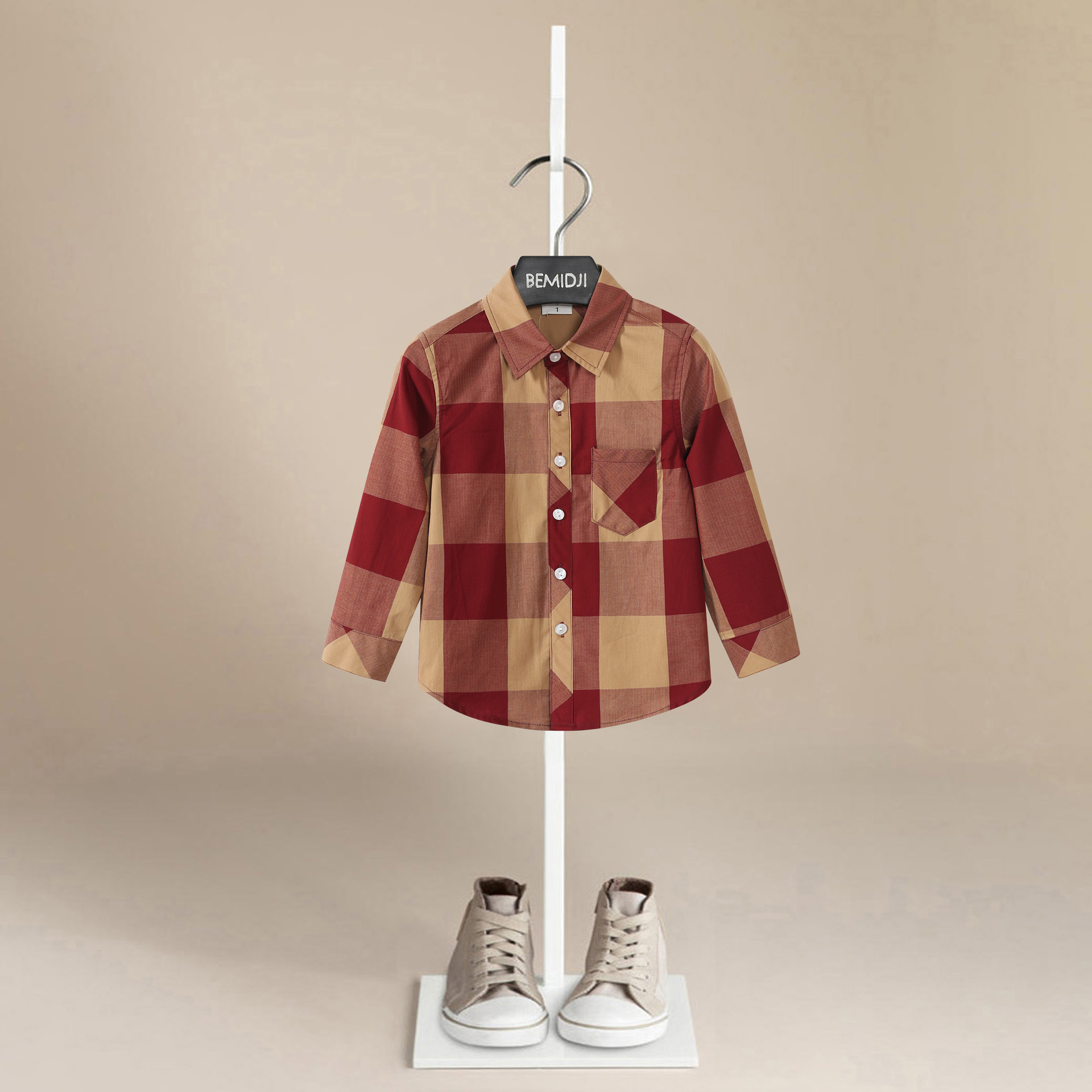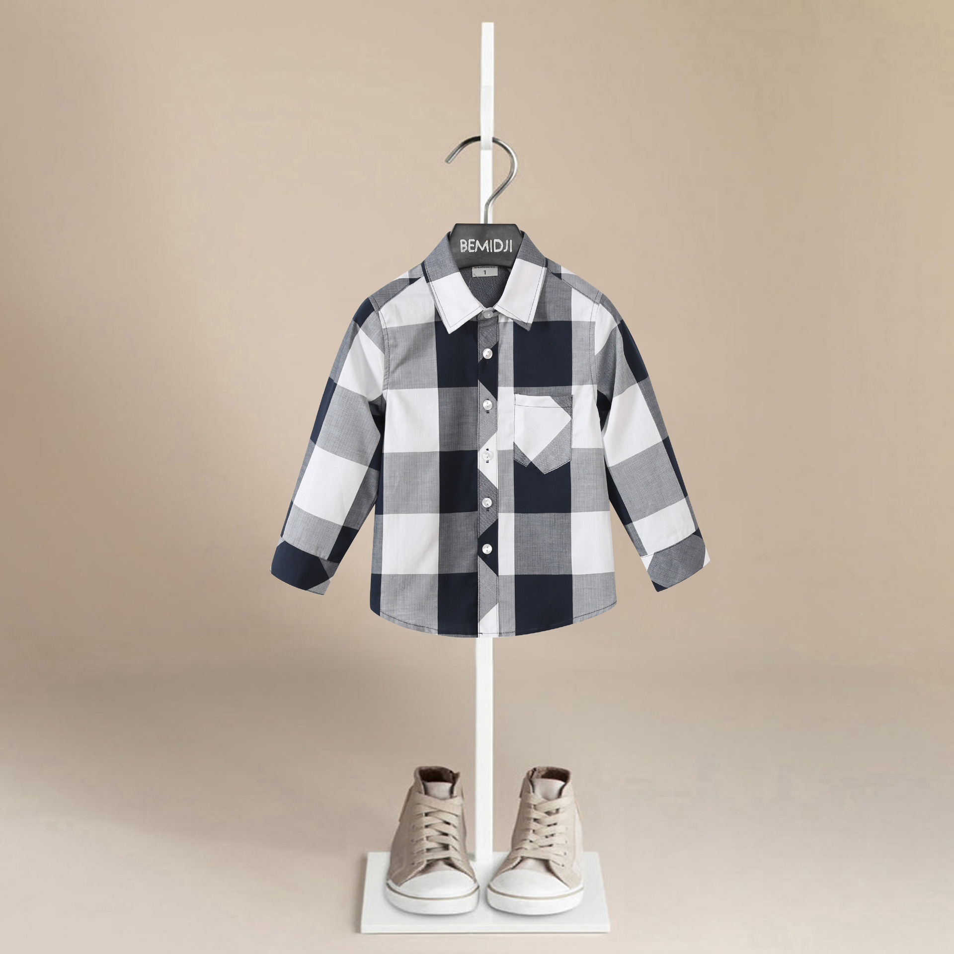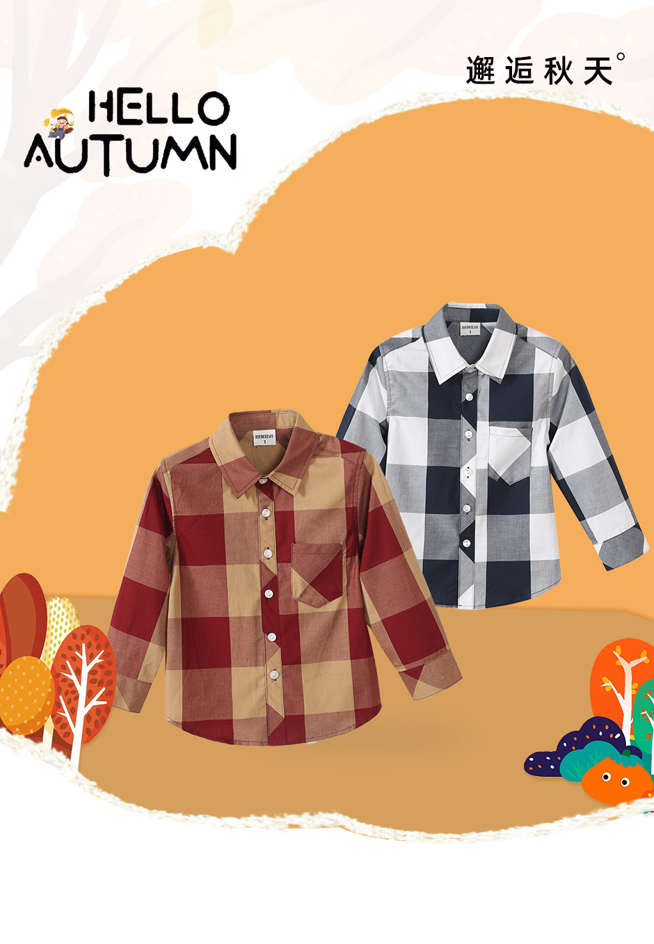 가을 어린이 격자 무늬 옷깃 셔츠 모든 경기 중소형 어린이 면 남아 긴팔 탑 유행 가디건스토어 가기