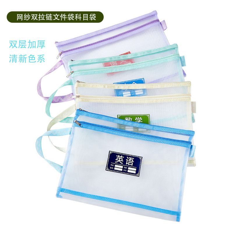 A4 메쉬 학생 주제 파일 가방 제목 분류 가방 휴대용 더블 레이어 두꺼운 교과서 책 투명 보관 가방