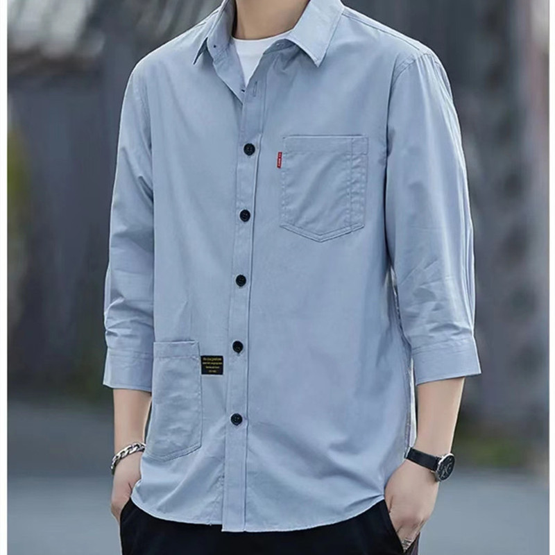 순면 세븐 슬리브 남성 셔츠 캐주얼 홍콩 바람 느슨한 버전의 소매 셔츠 남성 패션스토어 가기