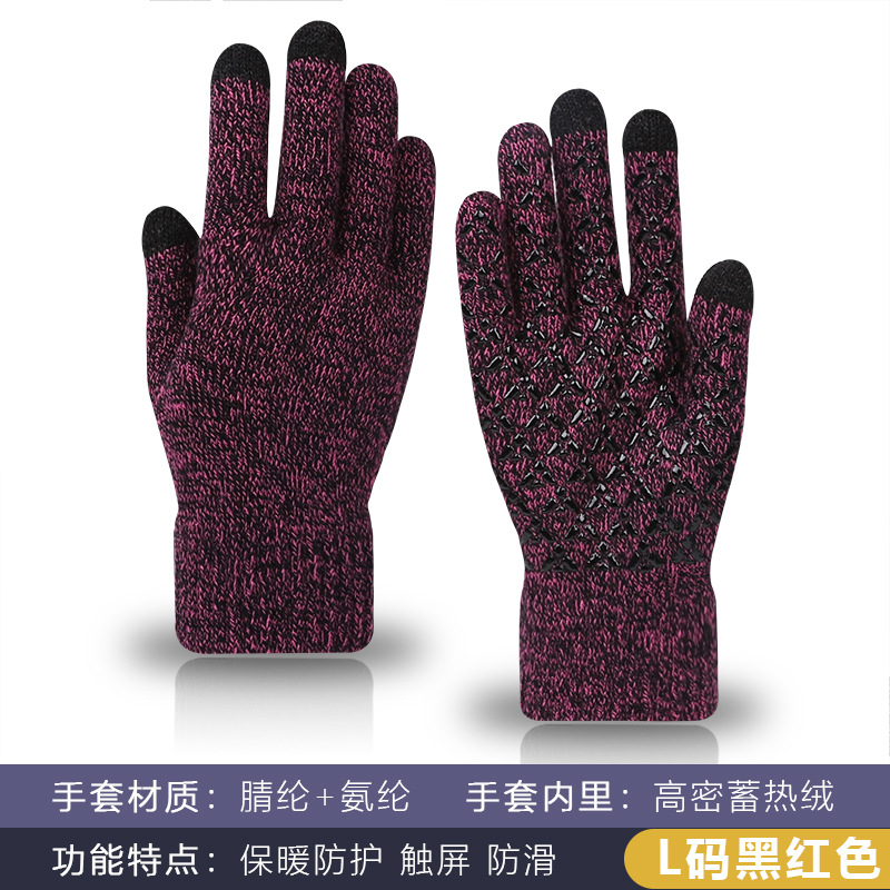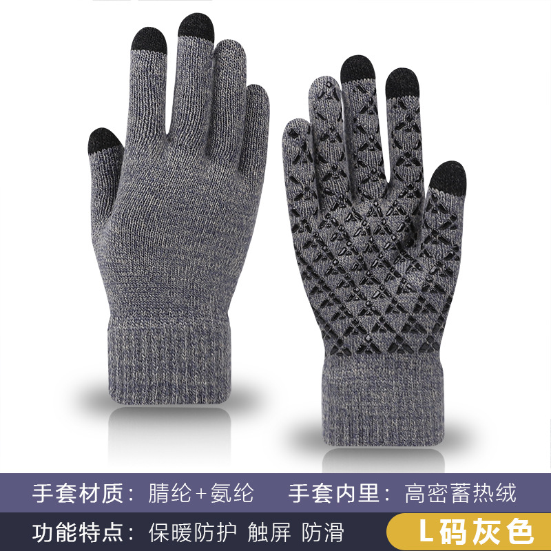 두꺼운 방한 남성과 여성의 미끄럼 방지 니트 장갑을 기모 연인을위한 크로스 보더 겨울 따뜻한 터치 스크린 양모 장갑