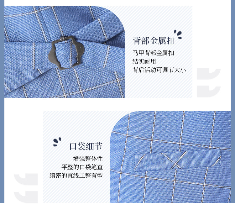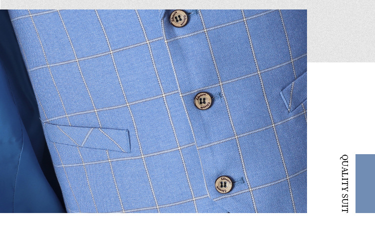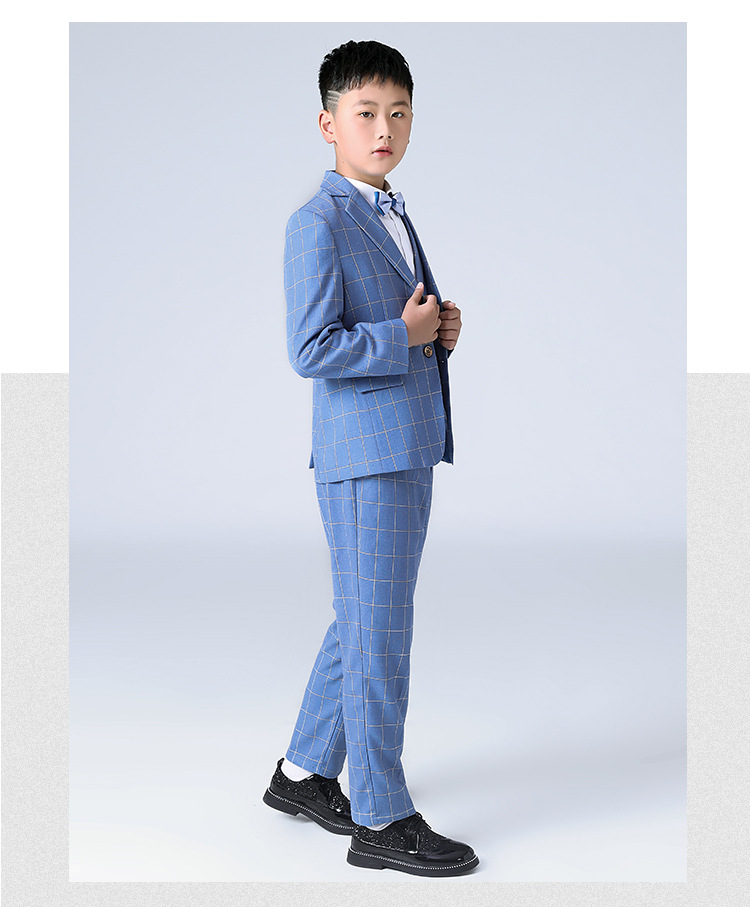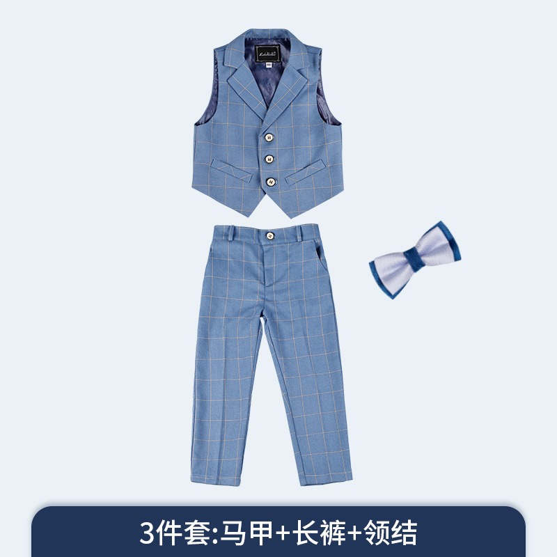 • 재킷 + 양복 조끼 + 바지 + 파란색 셔츠 + 나비 넥타이