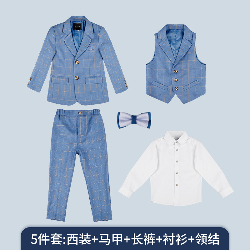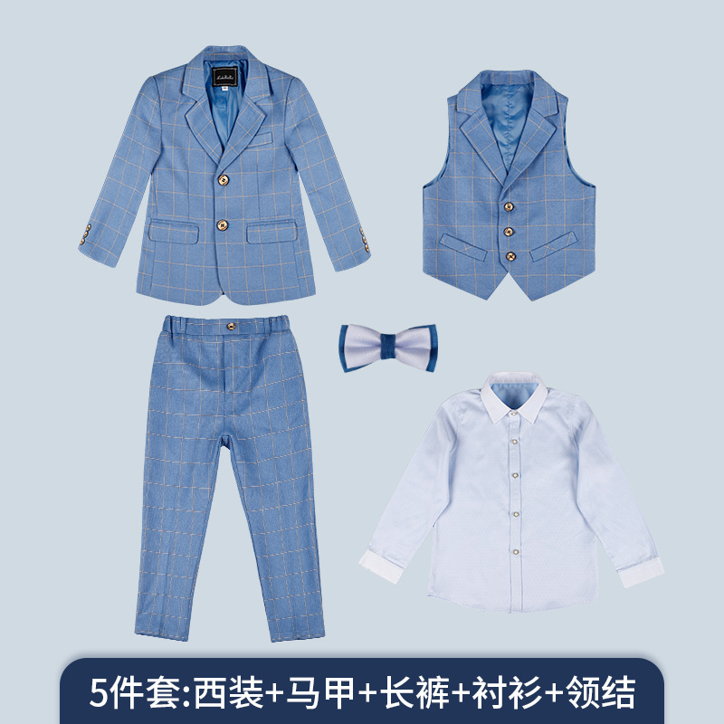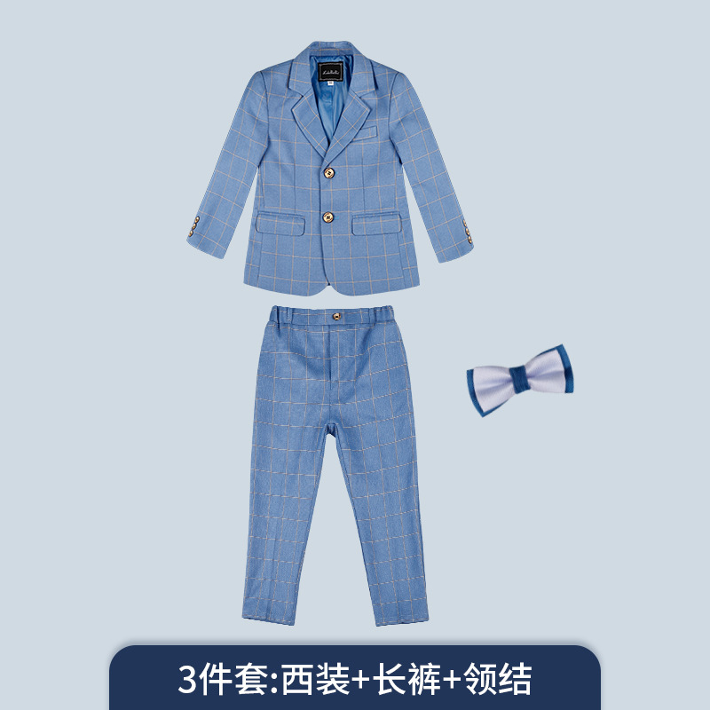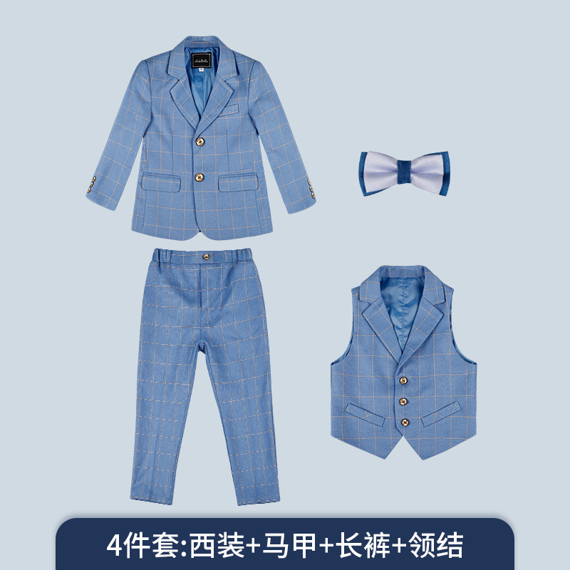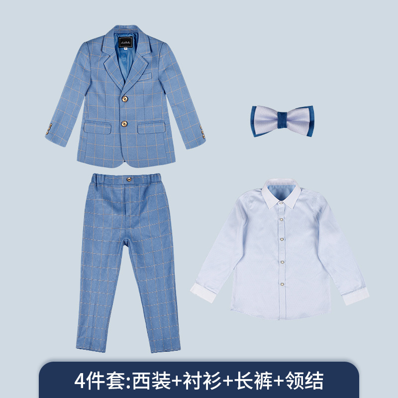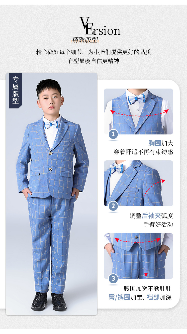 어린이 세트 세트 가을 새로운 지방 격자 무늬 세트 재킷 뚱뚱한 소년 발표자 성능 원피스