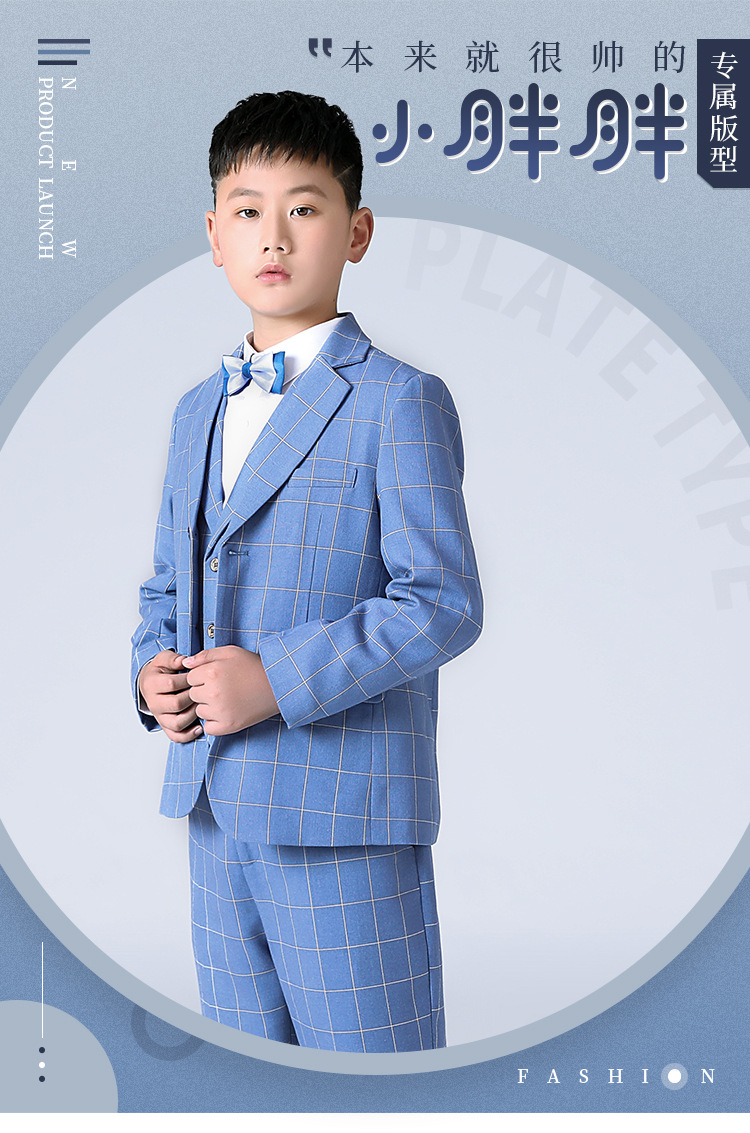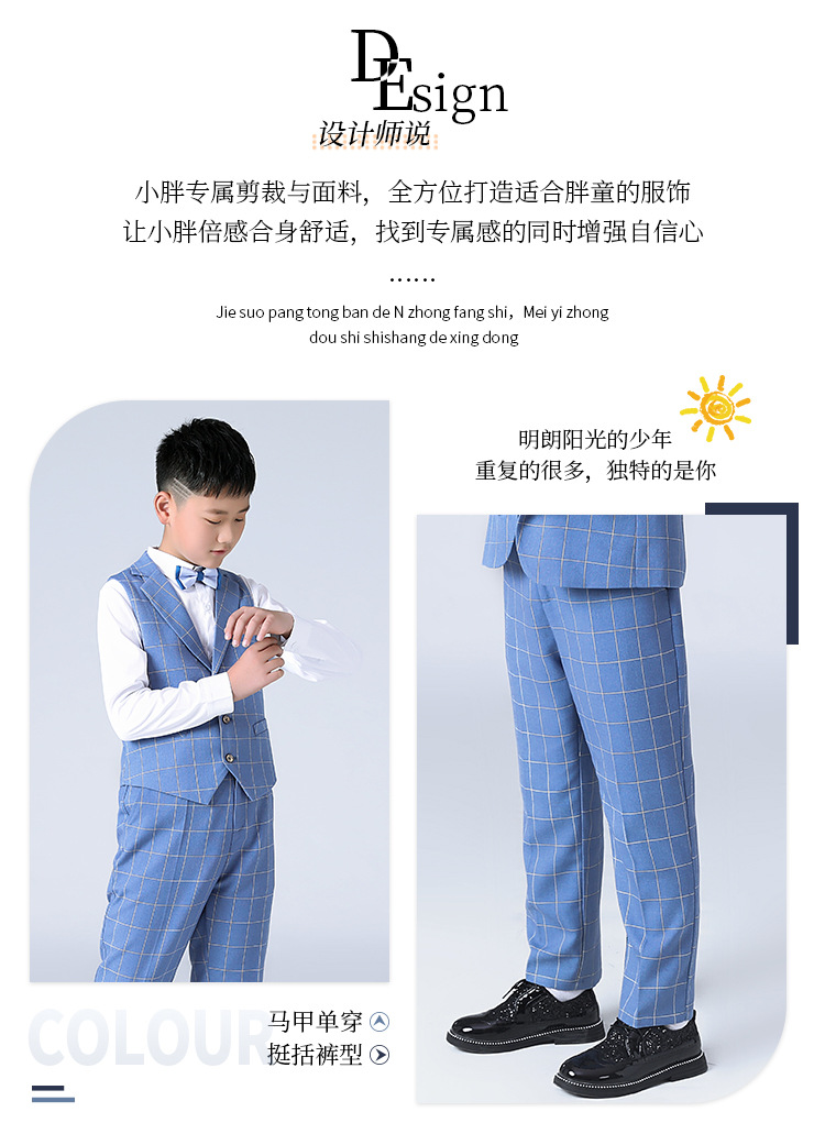 어린이 세트 세트 가을 새로운 지방 격자 무늬 세트 재킷 뚱뚱한 소년 발표자 성능 원피스스토어 가기