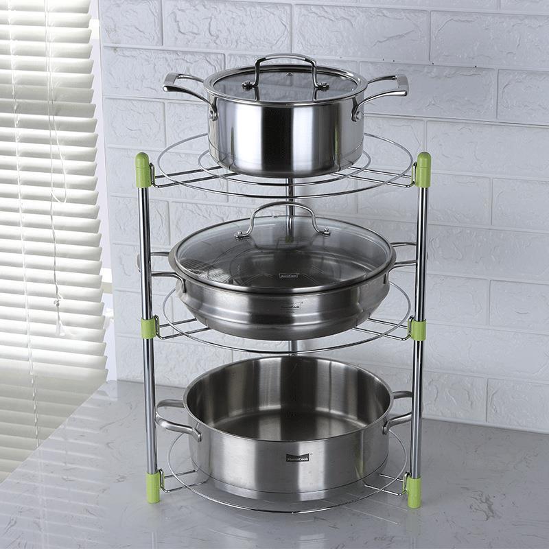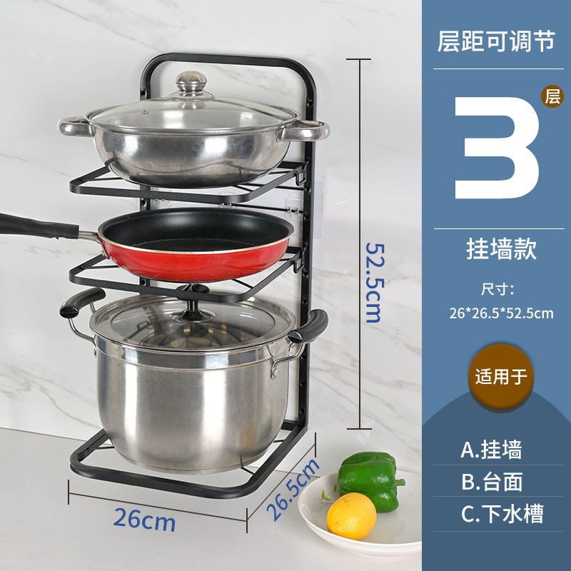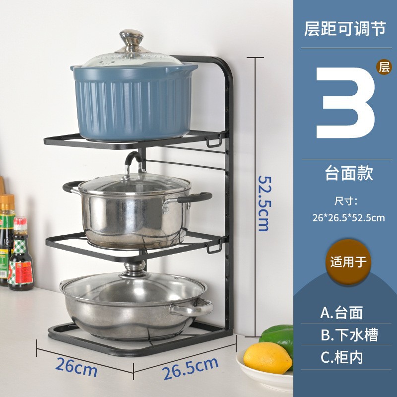 주방 수납 선반, 가정용 다층 조리기구 보관대, 싱크대 아래 캐비닛, 냄비를 여러 겹으로 놓을 수 있는 선반