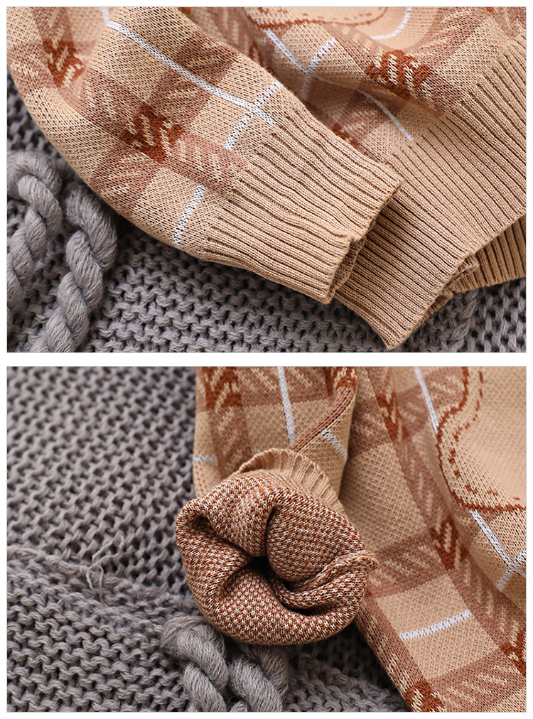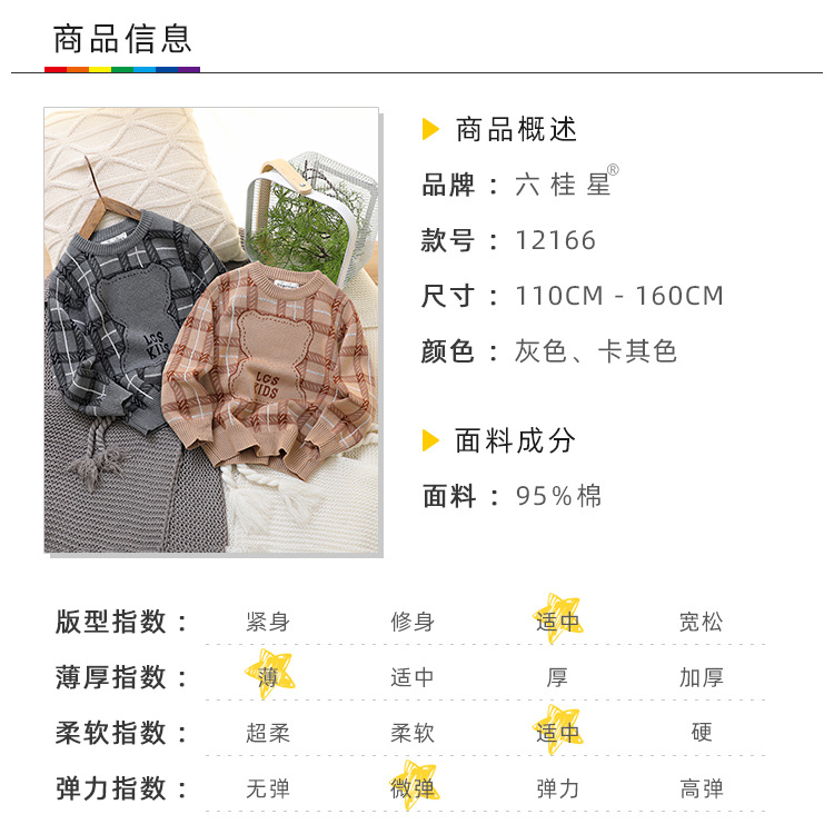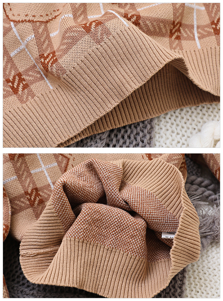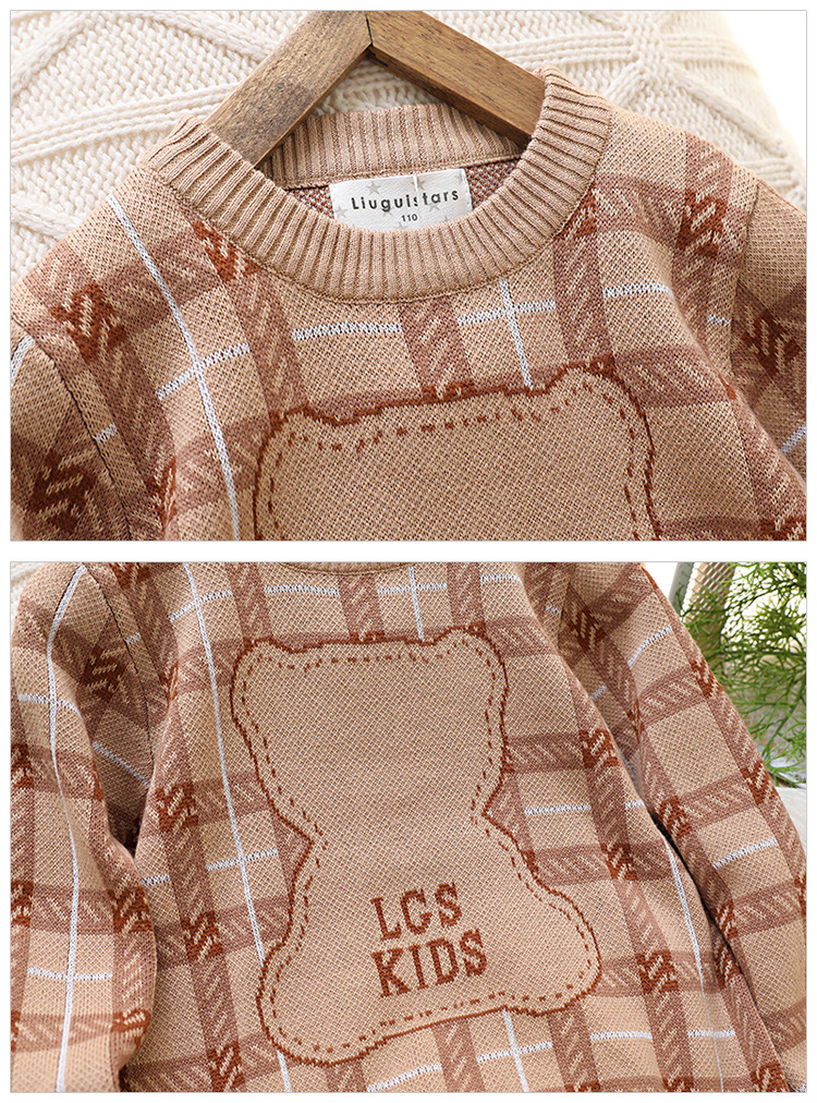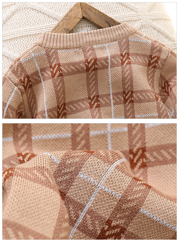 가을 2023 소년의 니트웨어 긴 소매 크루넥 자카드 풀오버 트렌디 격자 무늬 면 대형 어린이 스웨터스토어 가기