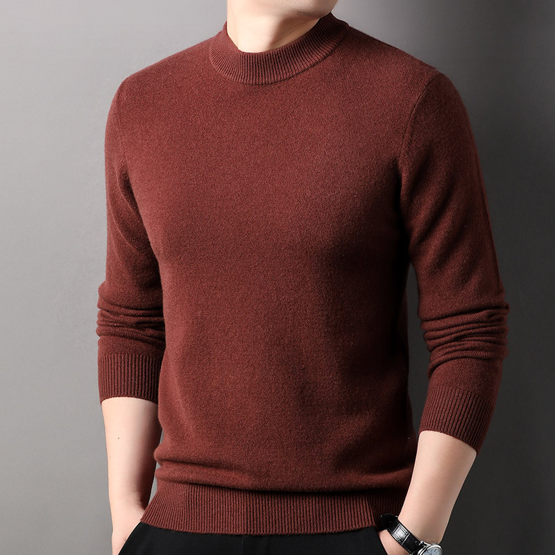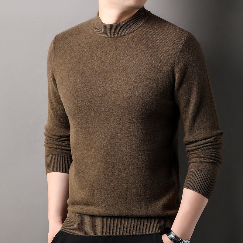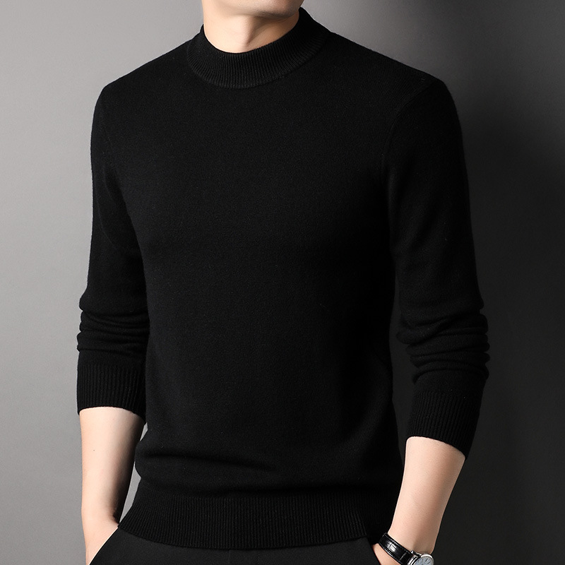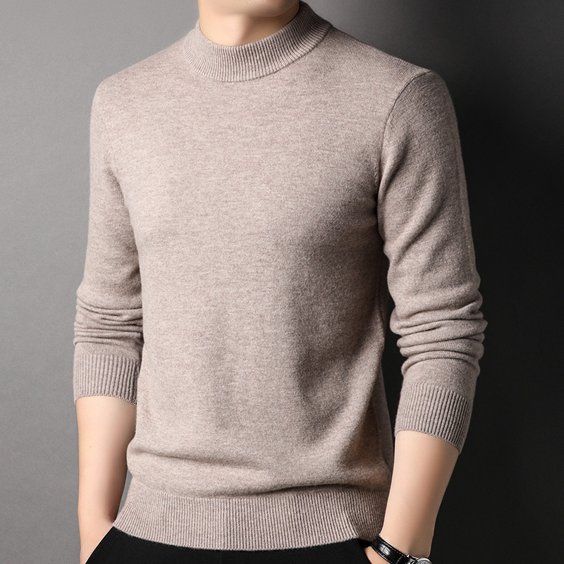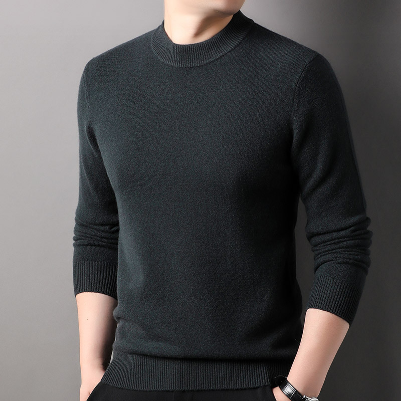 퓨어 울 패딩 450g 남성 스웨터 솔리드 컬러 멀티 컬러 캐주얼 세미 하이 칼라 따뜻한 중년 남성 스웨터