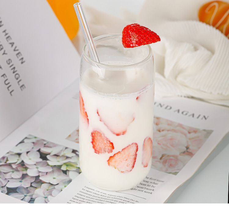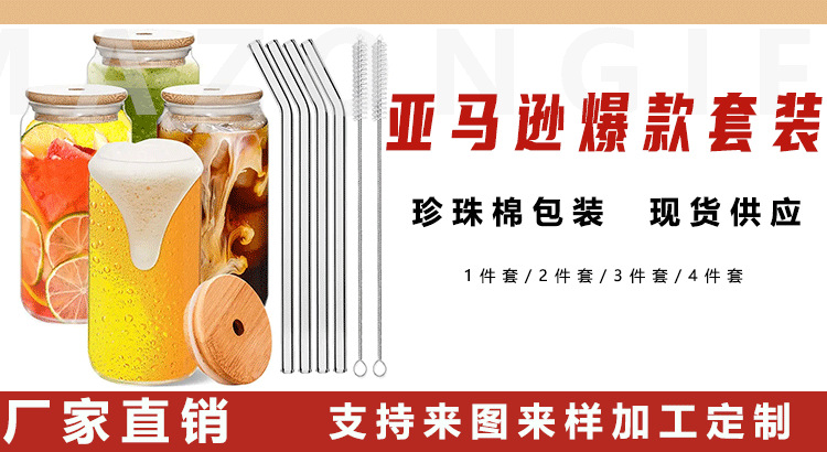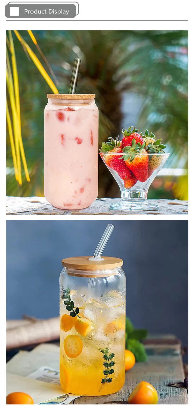 아마존 붕규산 유리 컵 콜라 컵 메이슨 컵 뚜껑 흡입 튜브 컵 커피 우유 컵 주스 컵