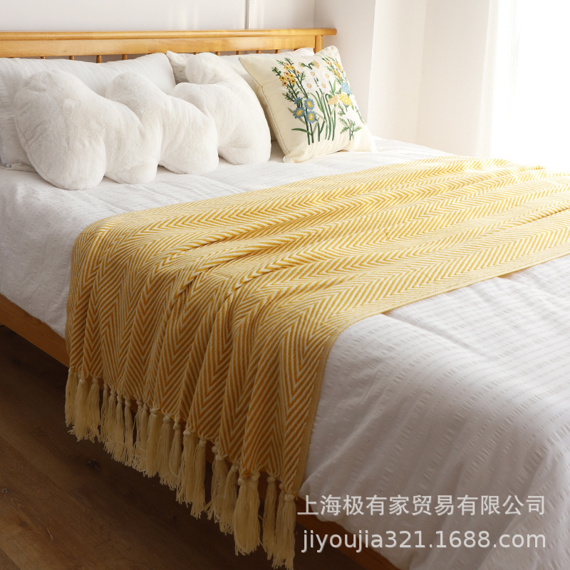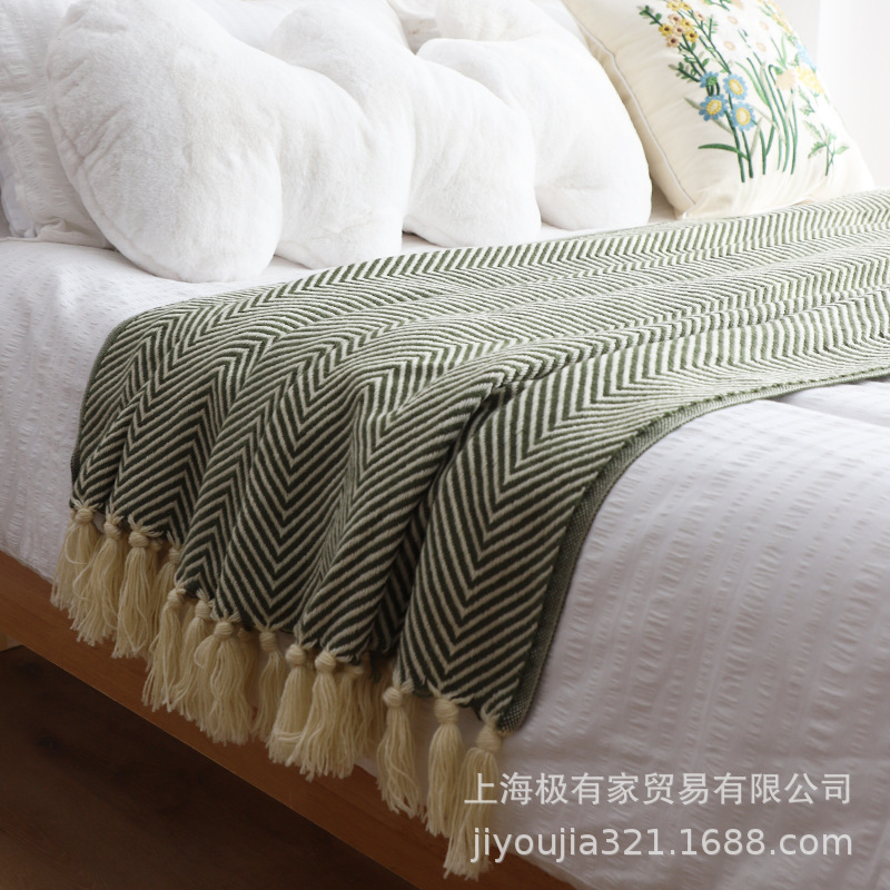클래식 아메리칸 레트로 그린 헤링본 패턴 짠 담요 호텔 홈스테이 침대 끝 수건 침대 끝 담요 소파 담요 침대 커버 담요