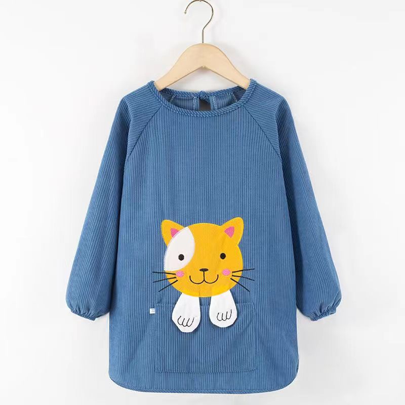 가을 겨울용 긴 기장의 어린이 방수 앞치마, 오염 방지 앞치마, 아이들 식사용, 초등학생, 유치원생용, 뒤집어 입는 디자인스토어 가기