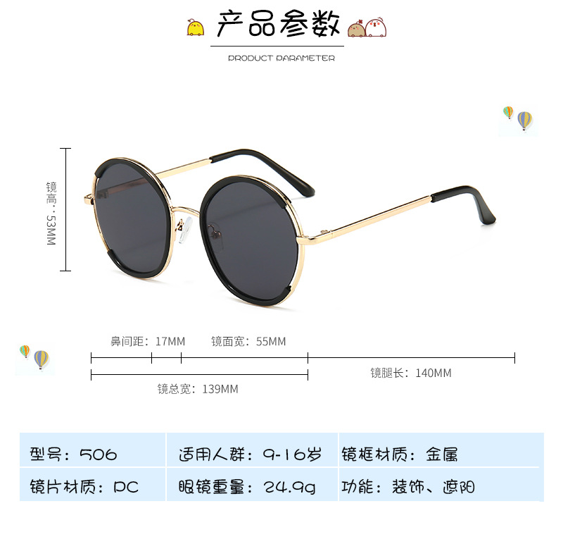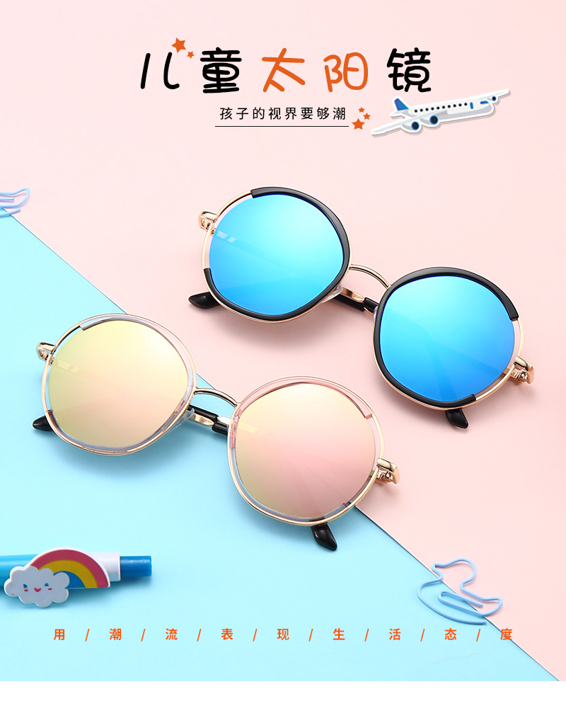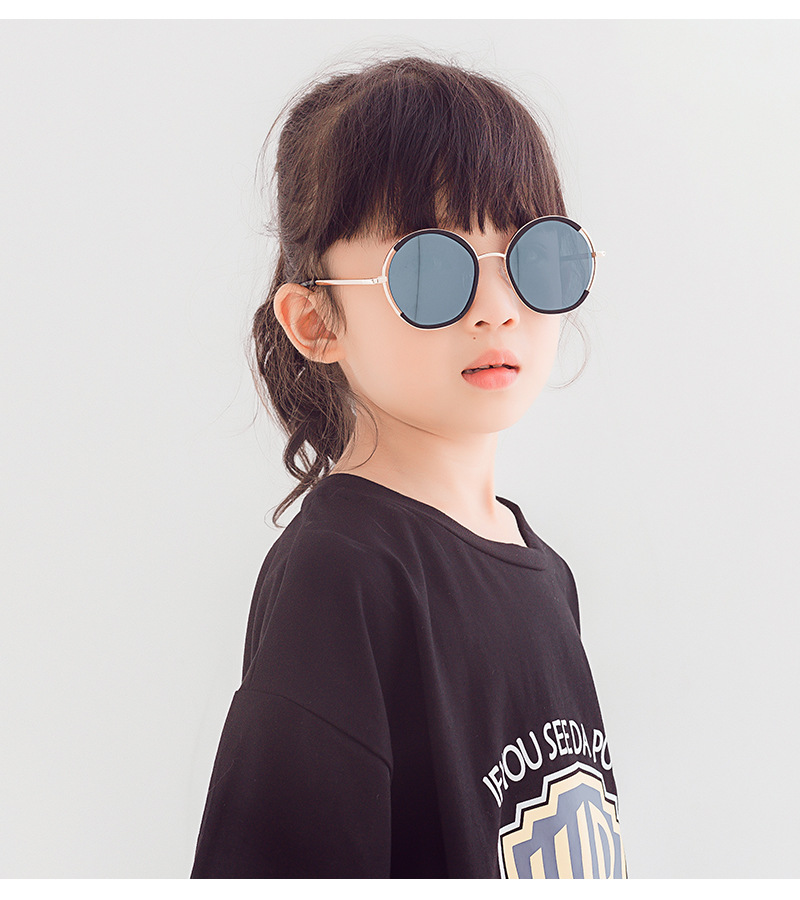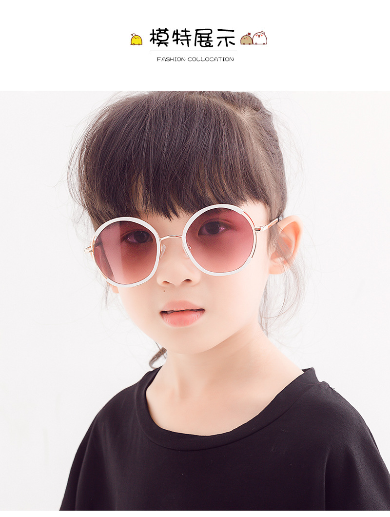 새로운 패션 어린이 안경 한국어 스타일 라운드 프레임 다목적 아기 선글라스 태양 보호 맞춤형 금속 어린이 선글라스