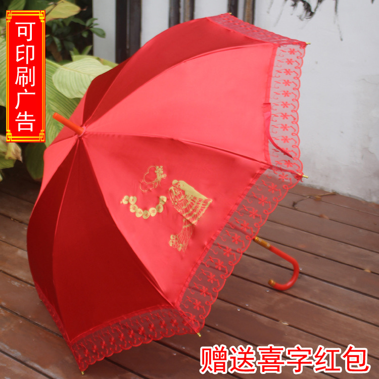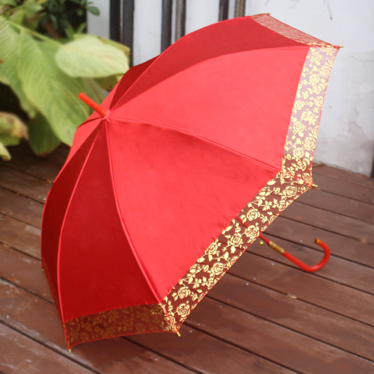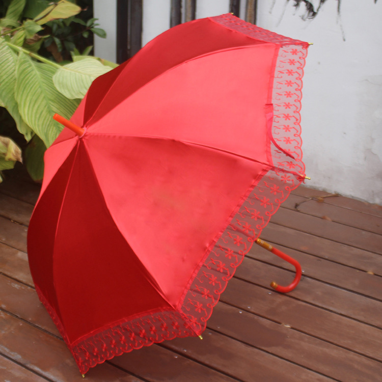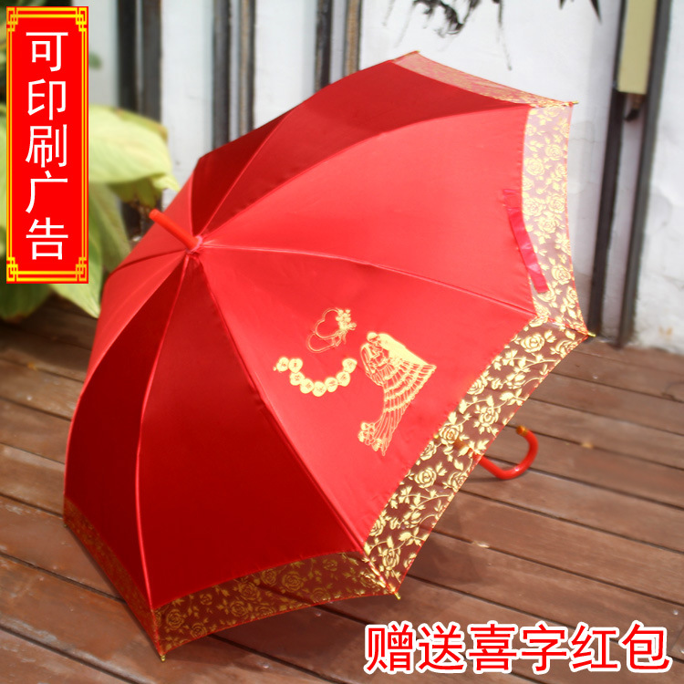 긴 핸들 자동 우산 밝은 빨간색 신부 우산 웨딩 우산 차양 공주 우산 맑은 우산 웨딩 우산 인쇄 가능한 광고스토어 가기