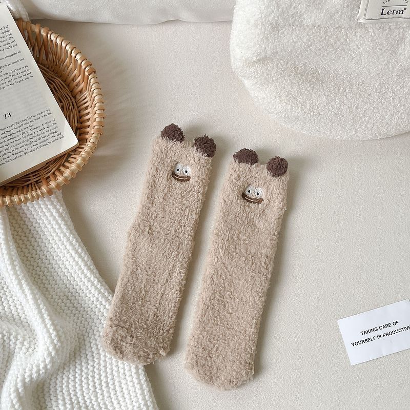 산호 벨벳 양말 여자의 겨울 두꺼운 봉제 따뜻한 수면 양말 귀여운 만화 바닥 양말 플러스 스타킹 배치스토어 가기