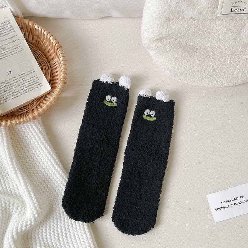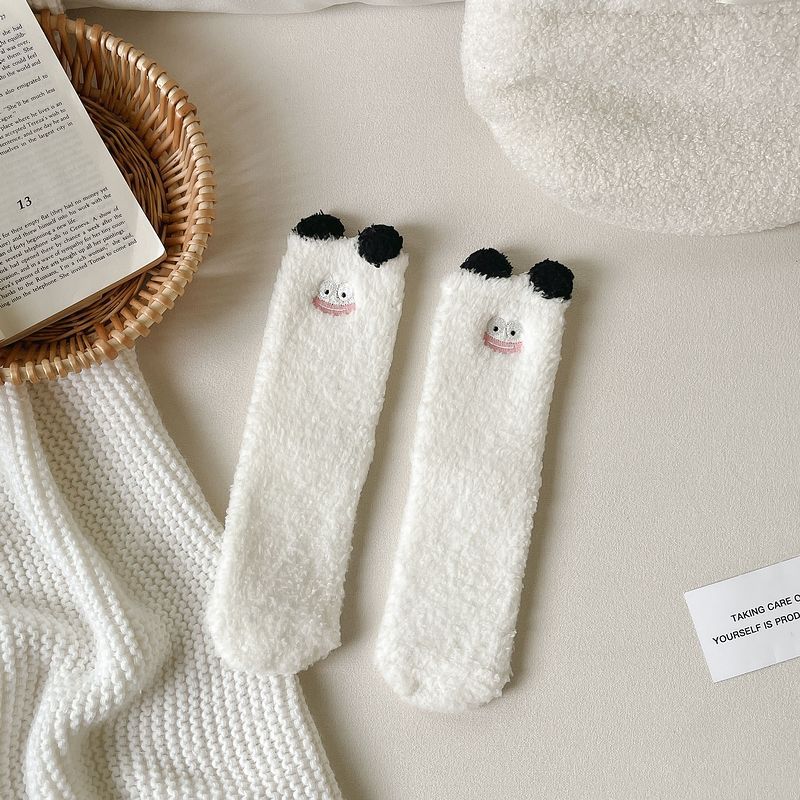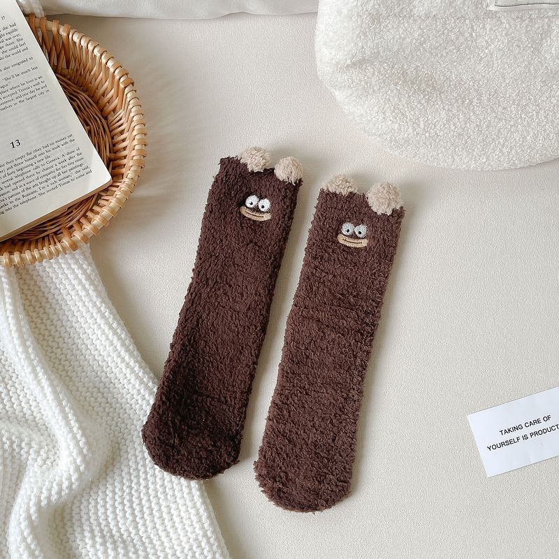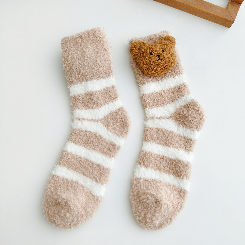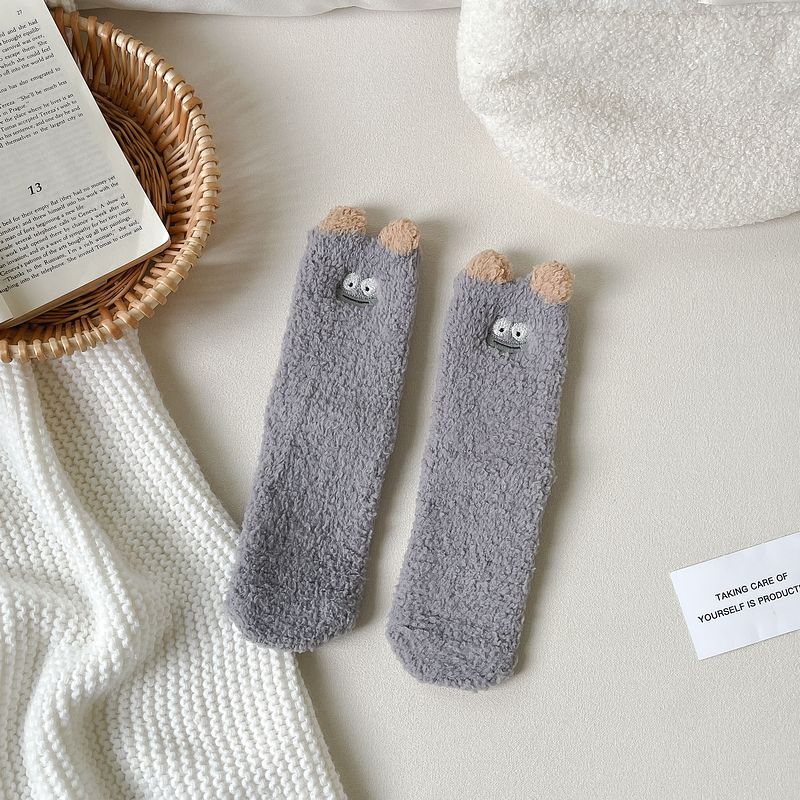 산호 벨벳 양말 여자의 겨울 두꺼운 봉제 따뜻한 수면 양말 귀여운 만화 바닥 양말 플러스 스타킹 배치