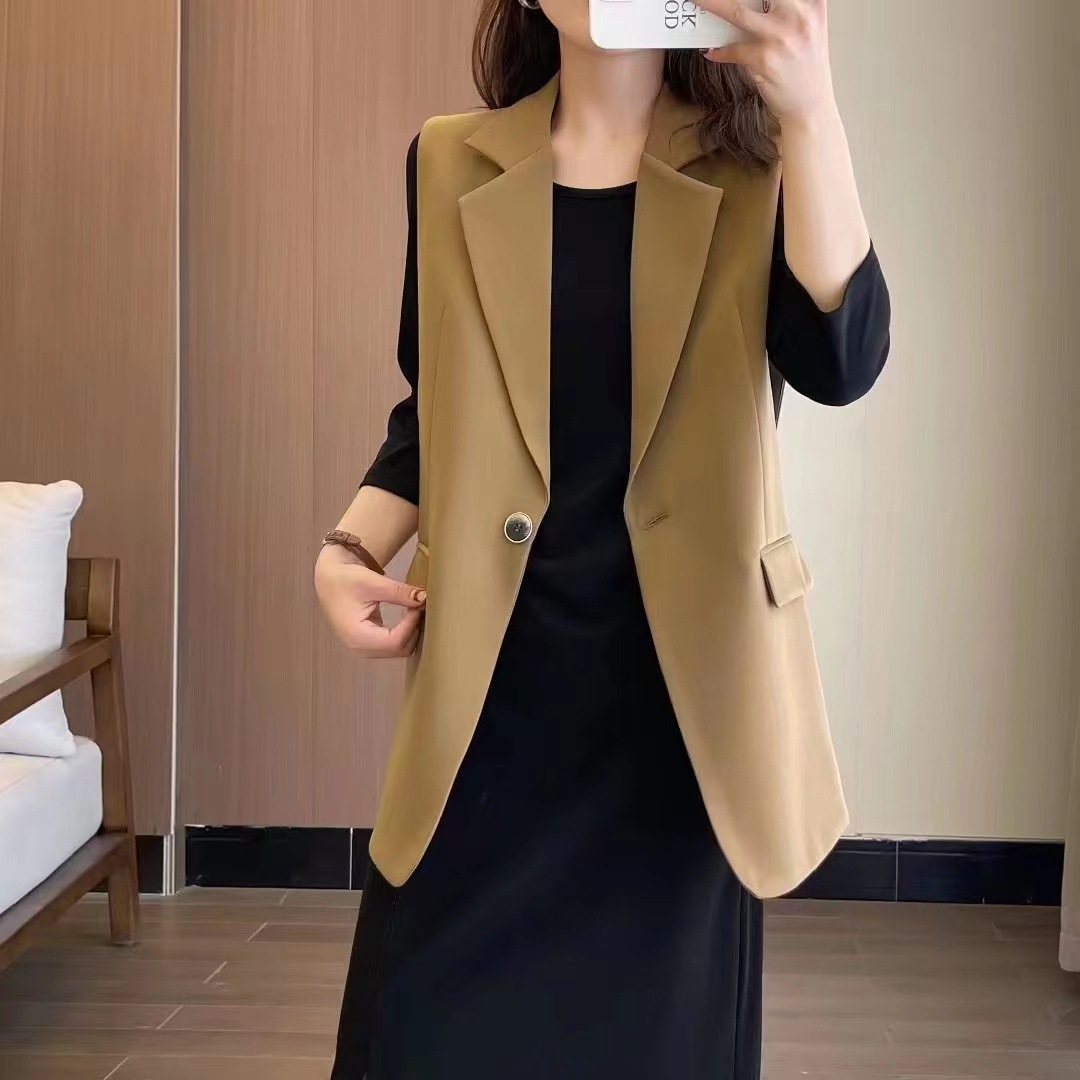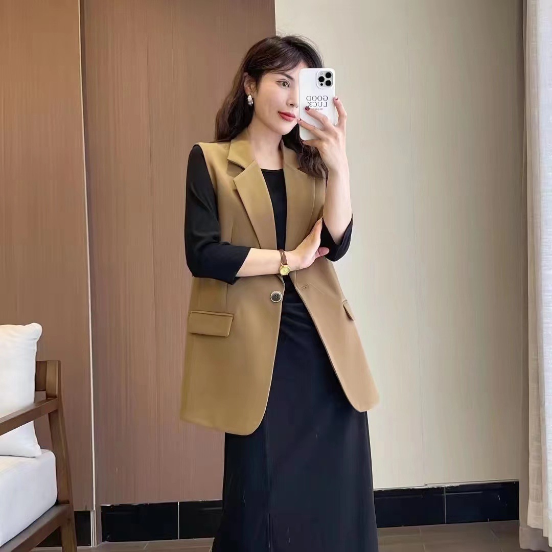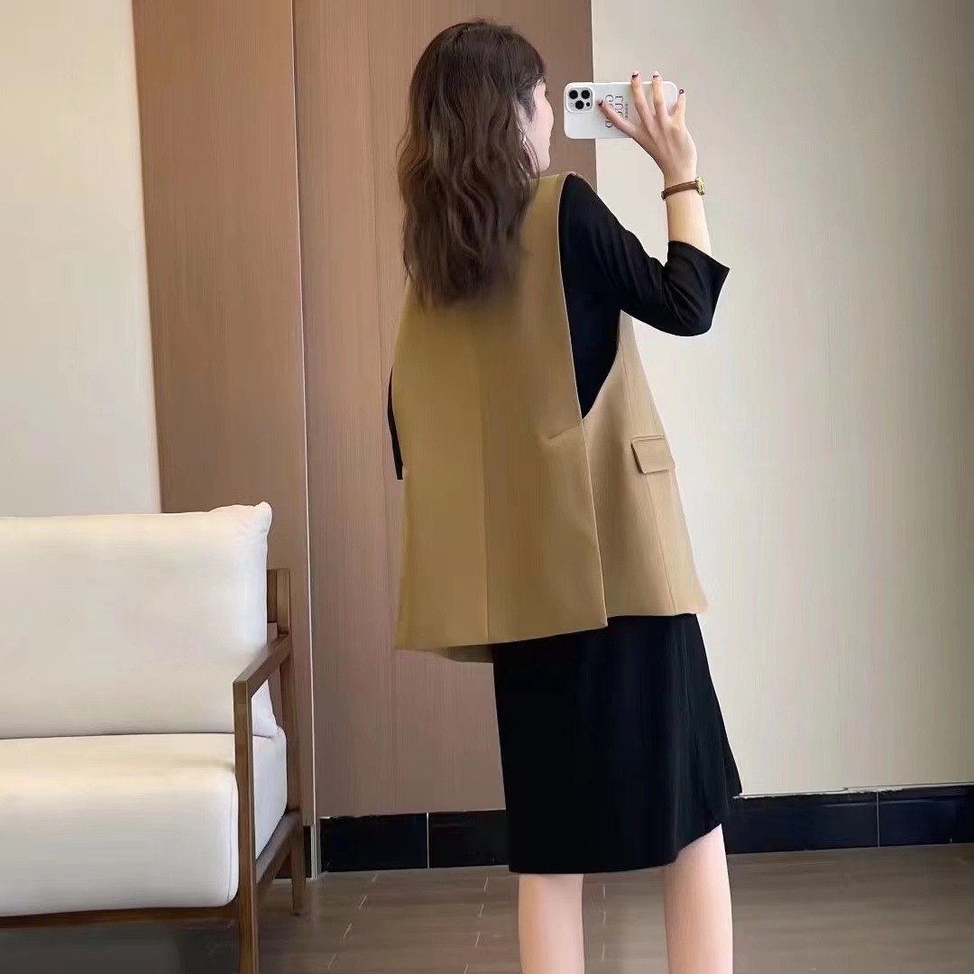 봄과 가을 여성의 칼라리스 조끼 코트 한국식 중간 길이 민소매 작은 세트 어깨 플러스 사이즈 겉옷 조끼 여성스토어 가기