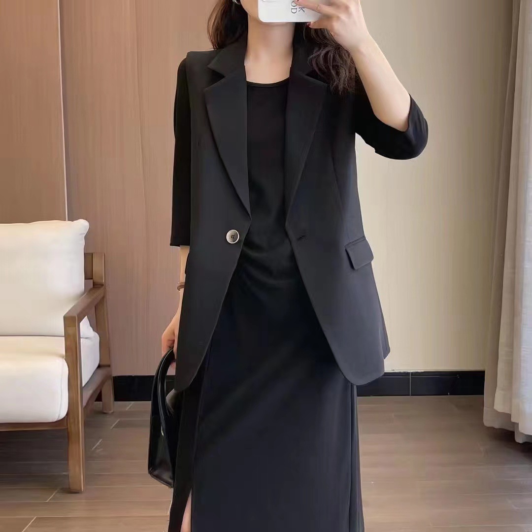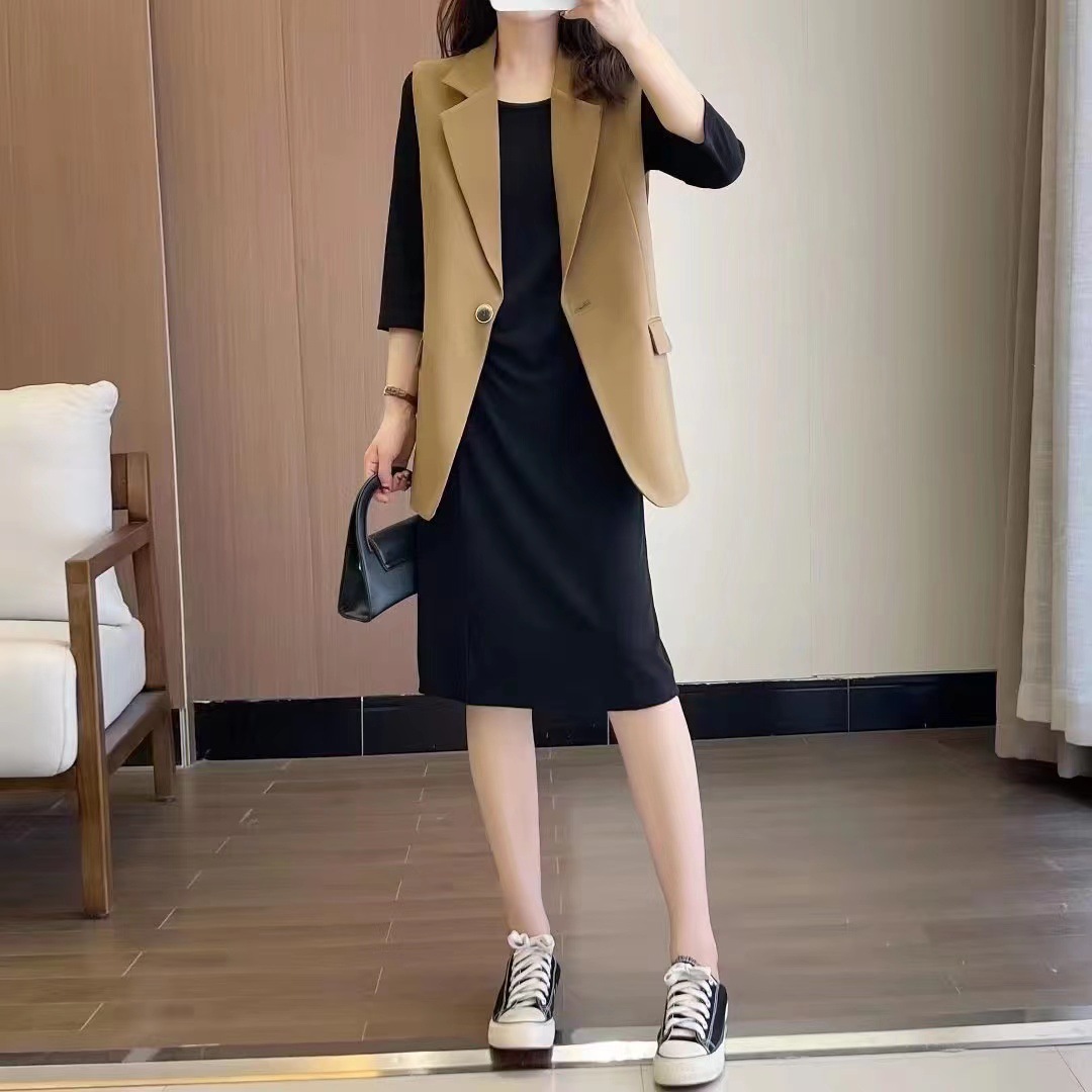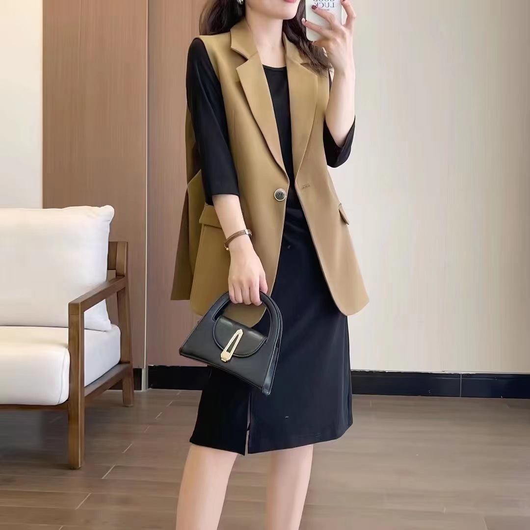 봄과 가을 여성의 칼라리스 조끼 코트 한국식 중간 길이 민소매 작은 세트 어깨 플러스 사이즈 겉옷 조끼 여성스토어 가기