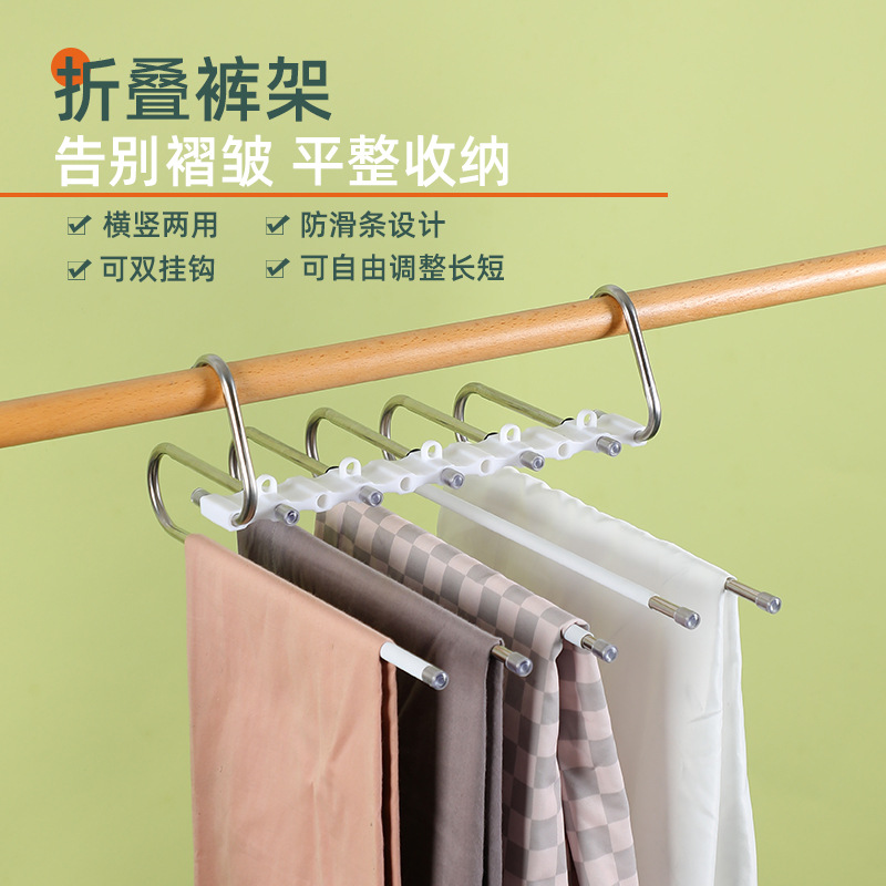 대담한 스테인레스 스틸 다기능 바지 랙 가정용 접이식 미끄럼 방지 옷장 보관 랙 다층 비 인쇄 걸이스토어 가기