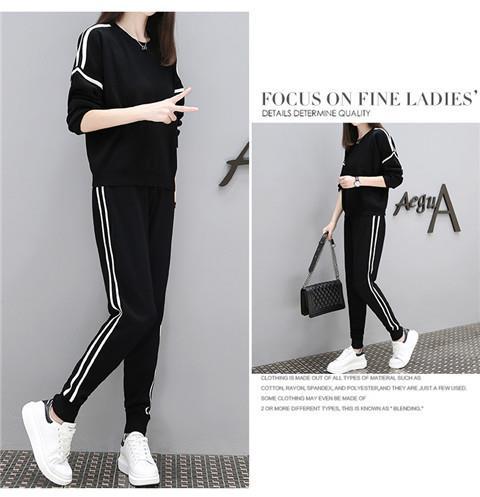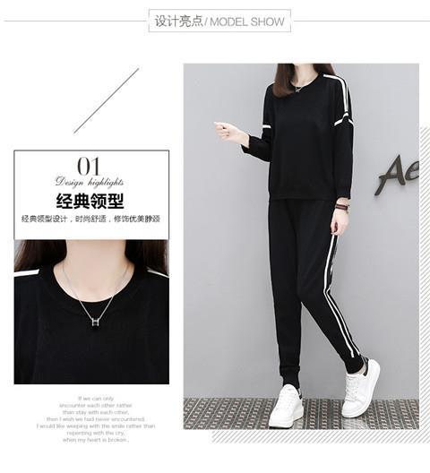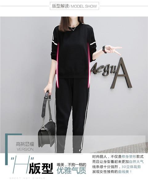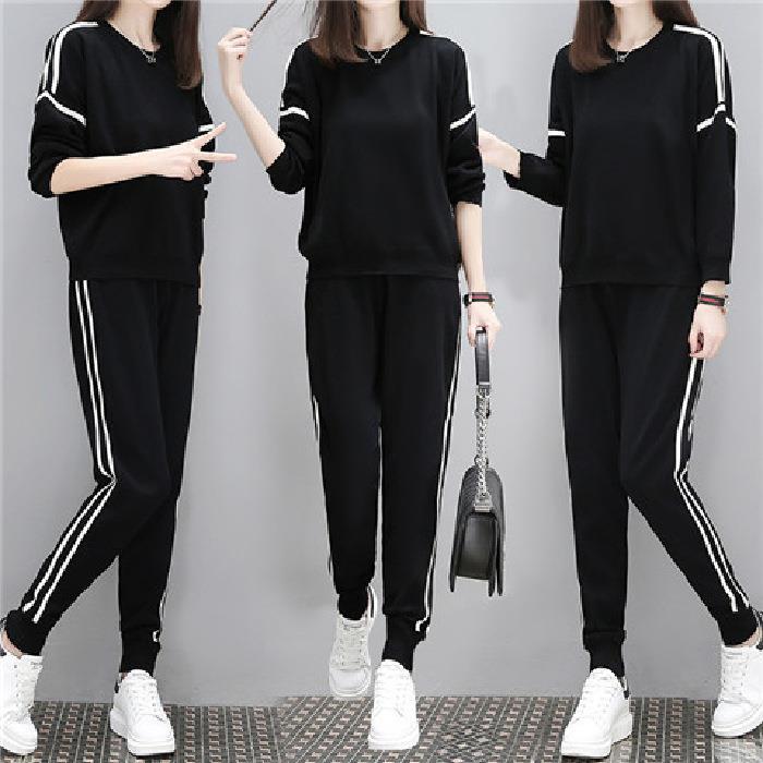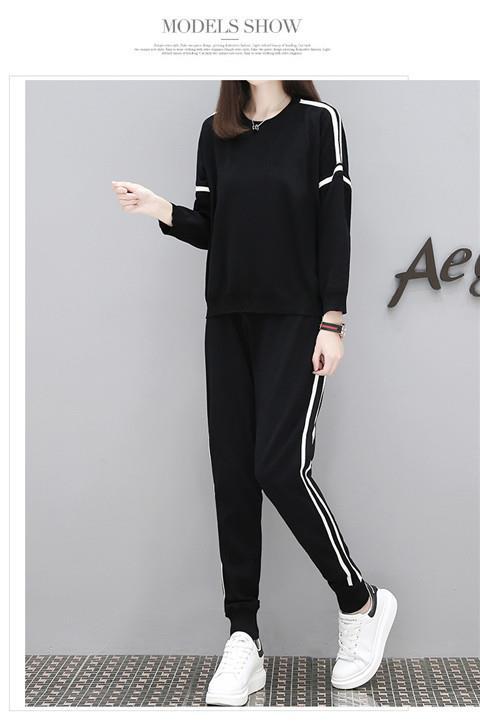 유럽 역 통통녀 스포츠 세트 여성 슬리밍 봄과 가을 플러스 사이즈 통통녀 여성 느슨한 패션 땀 투피스 세트