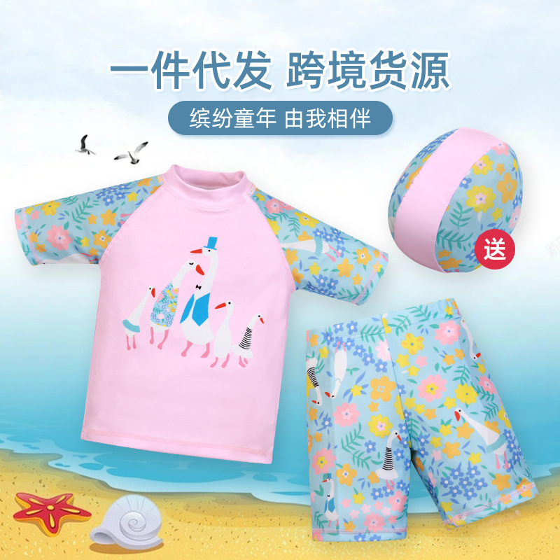 크로스보더 수영복, 아동 수영복, 스플릿 만화 수영복, 중대형 아동 및 여아 수영복, 귀여운 만화 여아 수영복 3종 세트