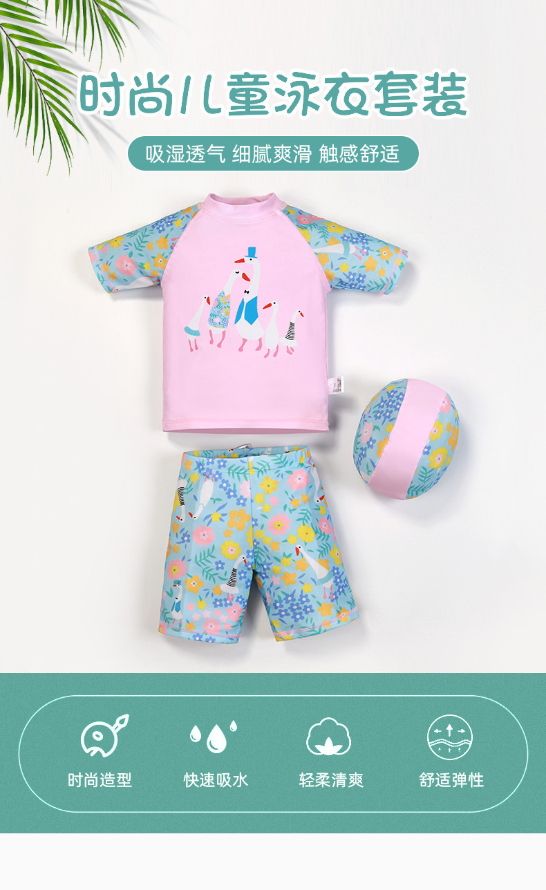 크로스보더 수영복, 아동 수영복, 스플릿 만화 수영복, 중대형 아동 및 여아 수영복, 귀여운 만화 여아 수영복 3종 세트스토어 가기