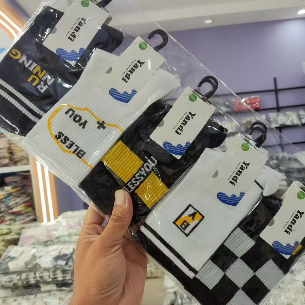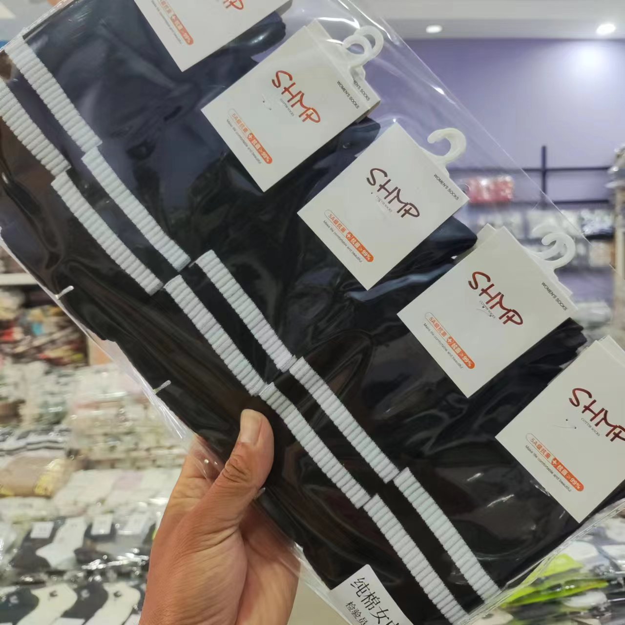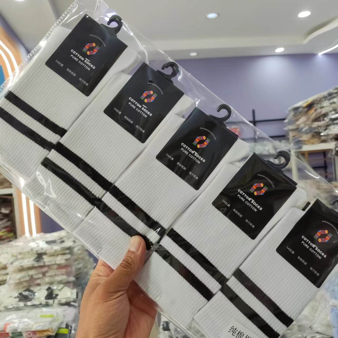 가을 겨울 유행 남녀 공용 롱 양말, 더블 바 무늬, 단색, 패셔너블한 일본 및 한국 스타일 학생용 코튼 양말스토어 가기