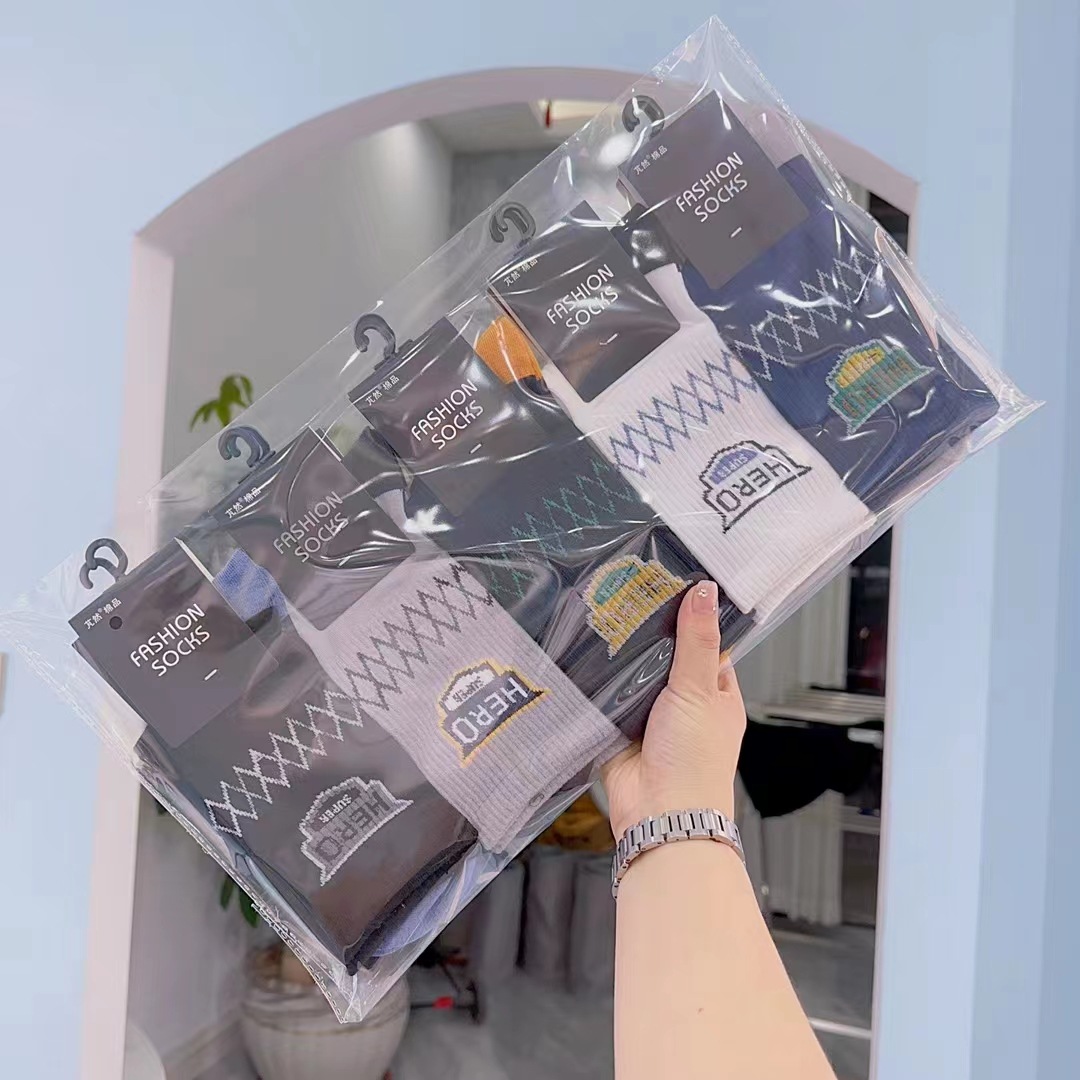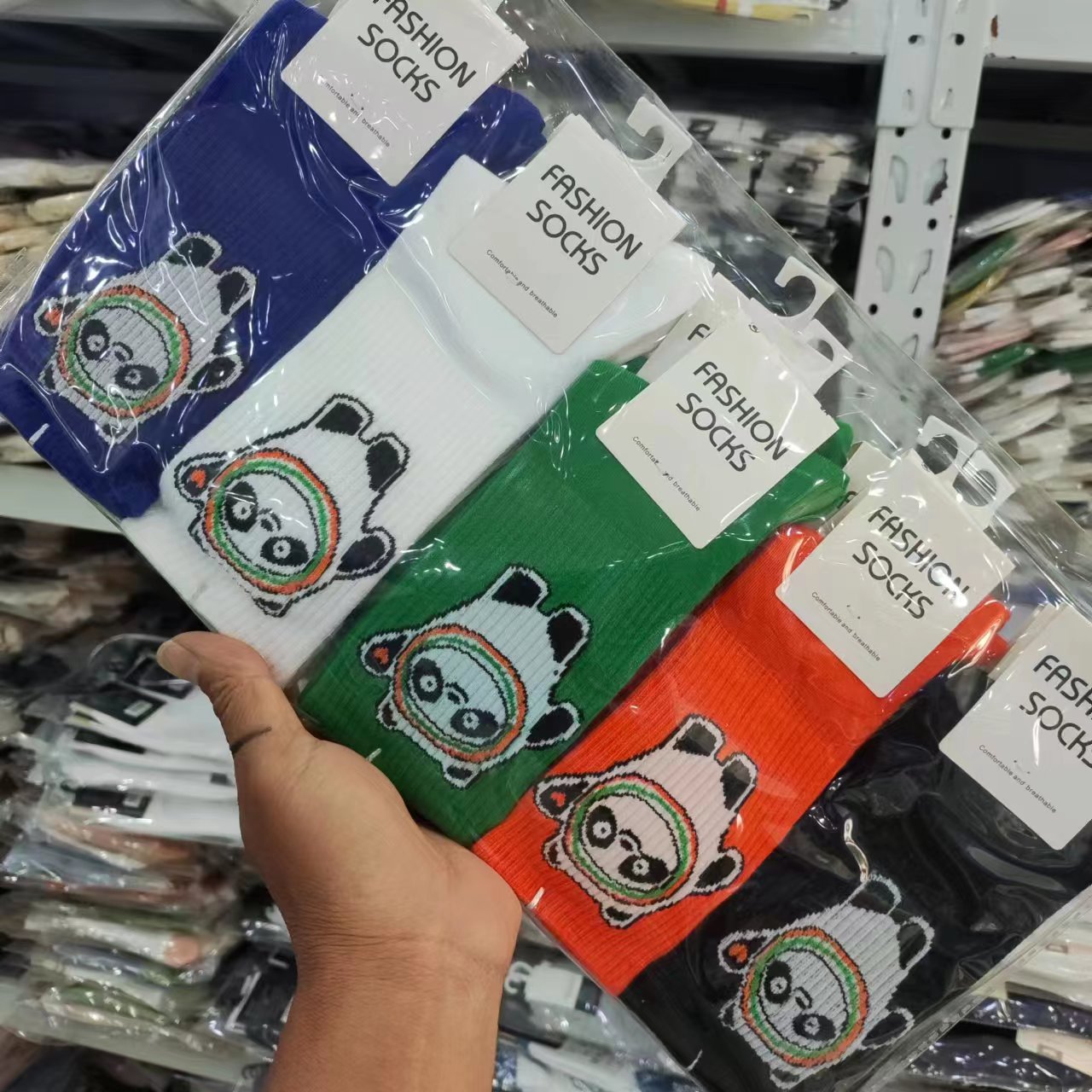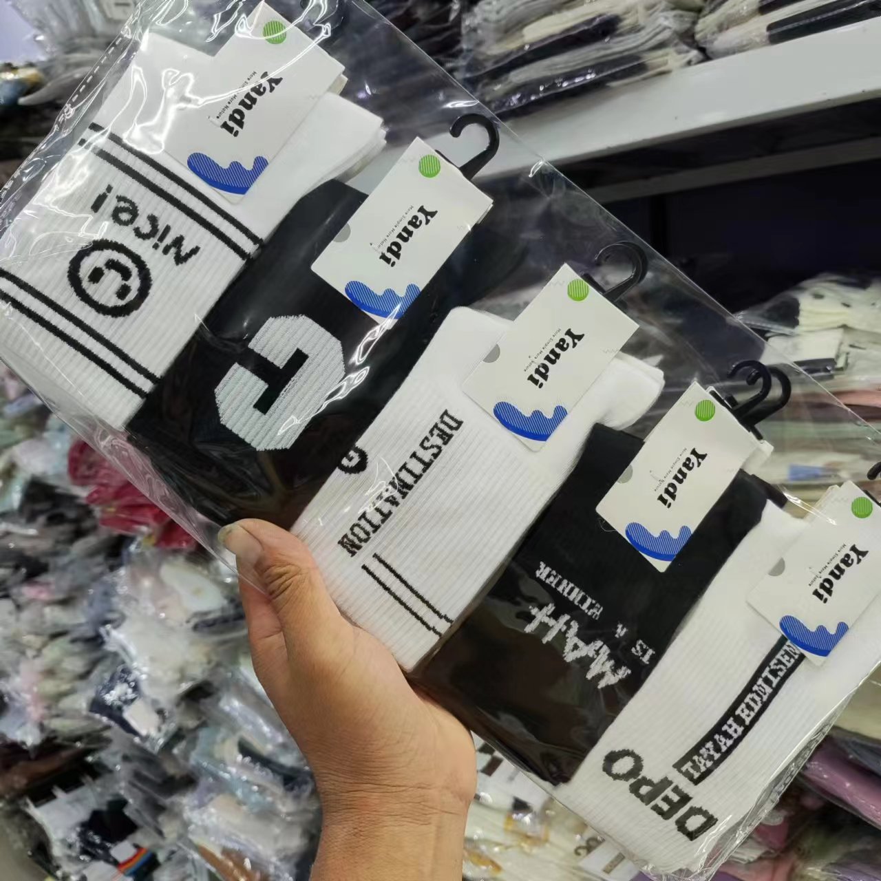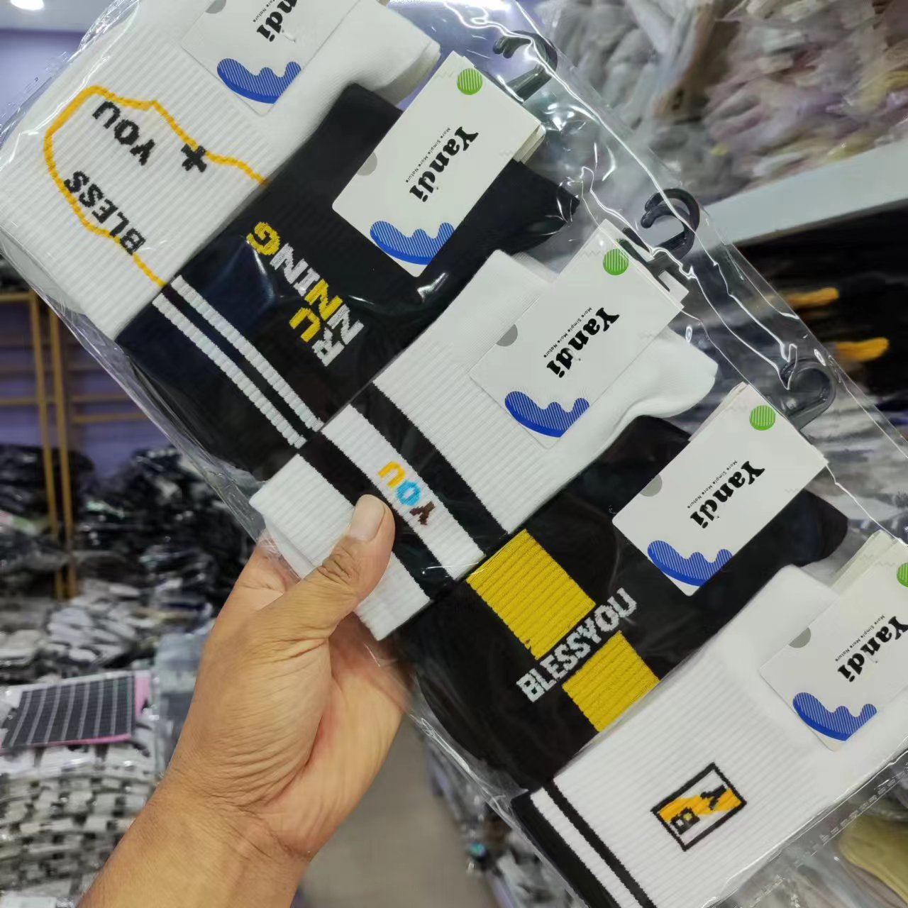 가을 겨울 유행 남녀 공용 롱 양말, 더블 바 무늬, 단색, 패셔너블한 일본 및 한국 스타일 학생용 코튼 양말스토어 가기