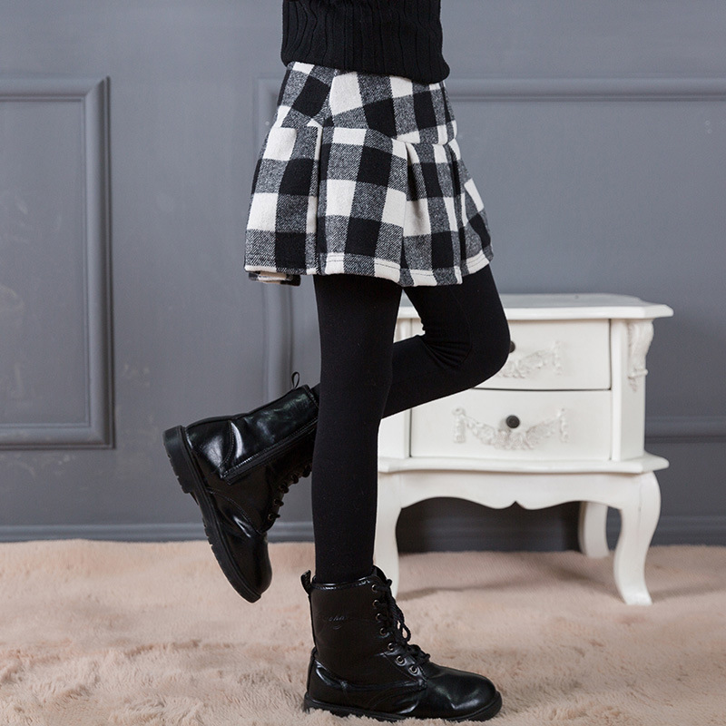 여아 체크무늬 스커트팬츠 2025 가을/겨울 신상 중대형 아동용 기모 안감 보온 레깅스 슬림핏 신축성 슬림 효과