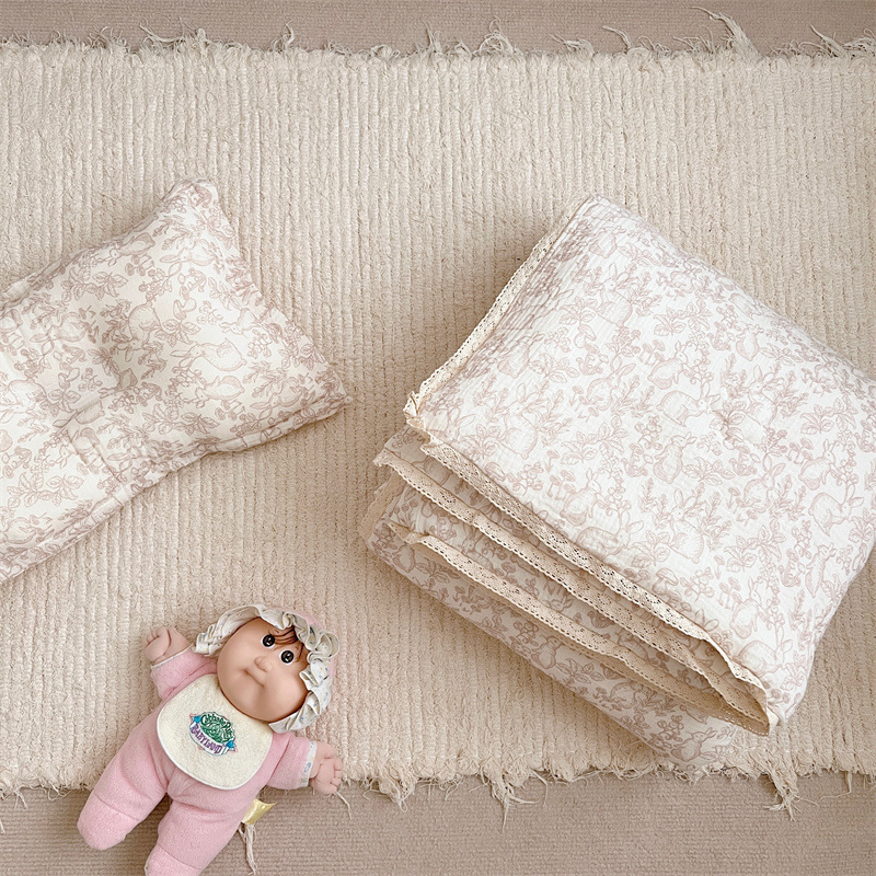 북유럽 신선한 복고풍 스타일 토끼 면 거즈 클래스 아기 싱글 여름 이불 꽃 이불 기계 빨