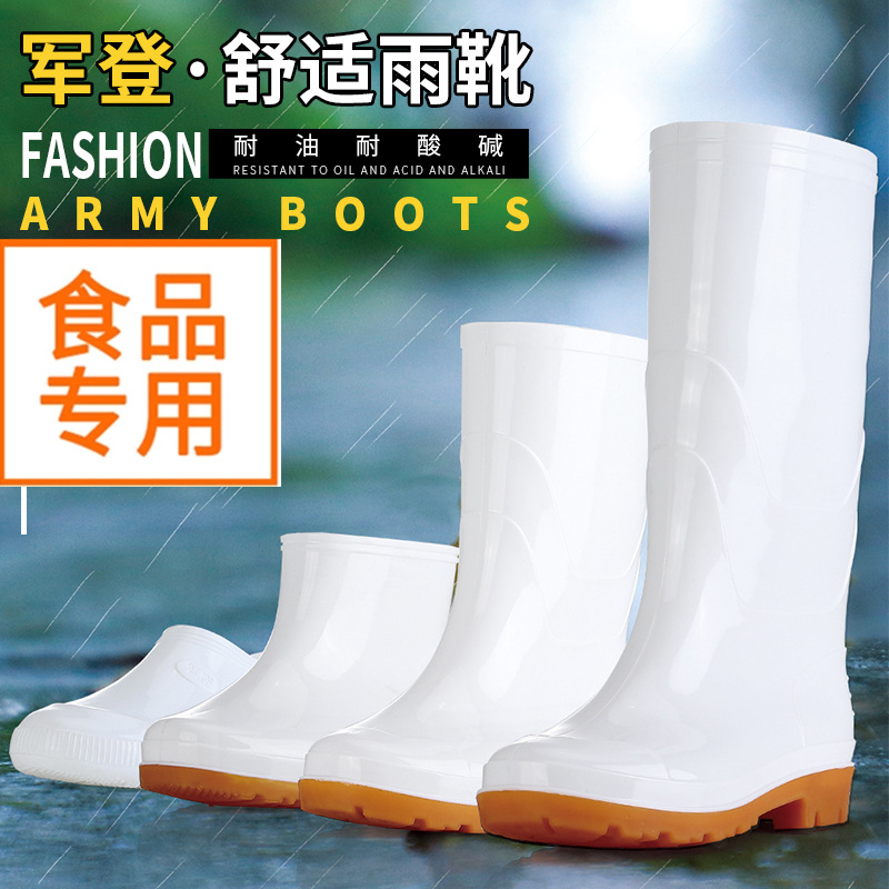 남성과 여성을위한 흰색 레인 슈즈 식품 공장 특수 신발 산성 및 알칼리 방지 위생 장화 내유성 방수 미끄럼 방지 고무 신발 주방 물 신발