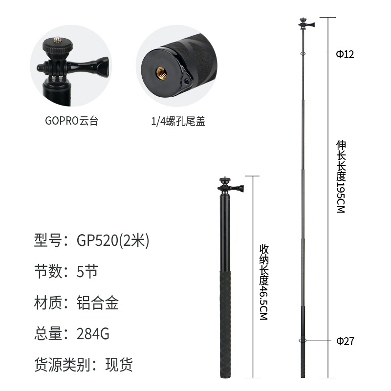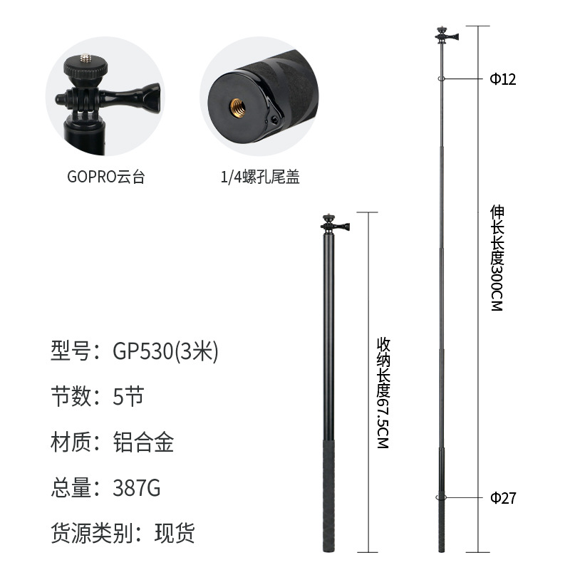 GoPro 셀카봉 액션 카메라 야외 촬영 액세서리 핸드헬드 스틱 GoPro 카메라 3m 범용 연장 스틱스토어 가기