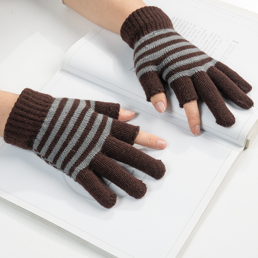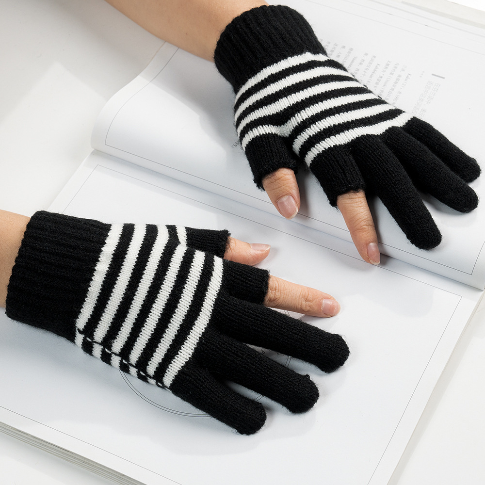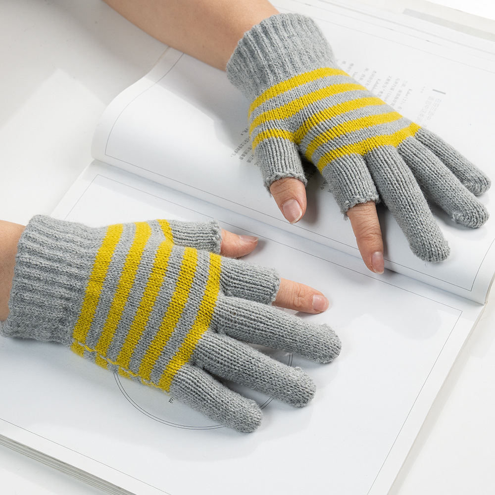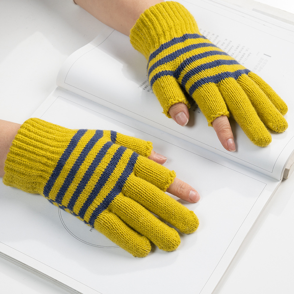 가을과 겨울 장갑 남성과 여성의 두 손가락 따뜻한 방한 터치 스크린 장갑 캐시미어 스트라이프 니트 울 장갑스토어 가기