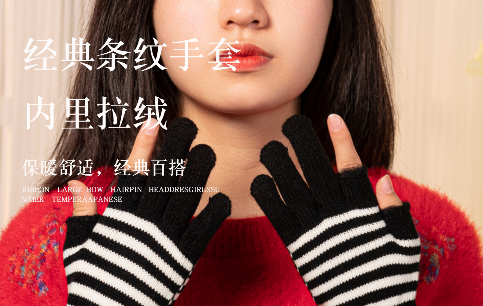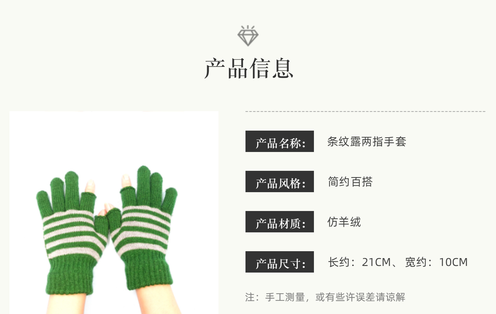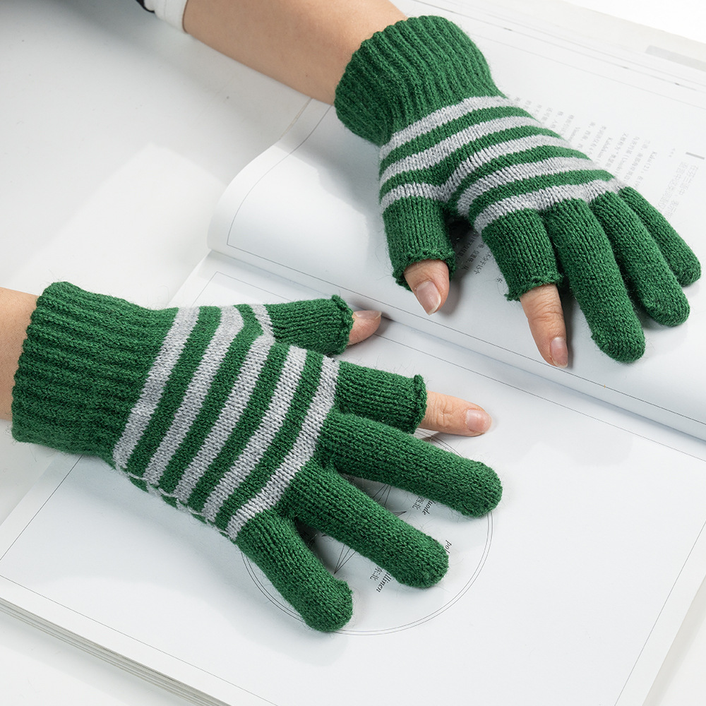 가을과 겨울 장갑 남성과 여성의 두 손가락 따뜻한 방한 터치 스크린 장갑 캐시미어 스트라이프 니트 울 장갑스토어 가기