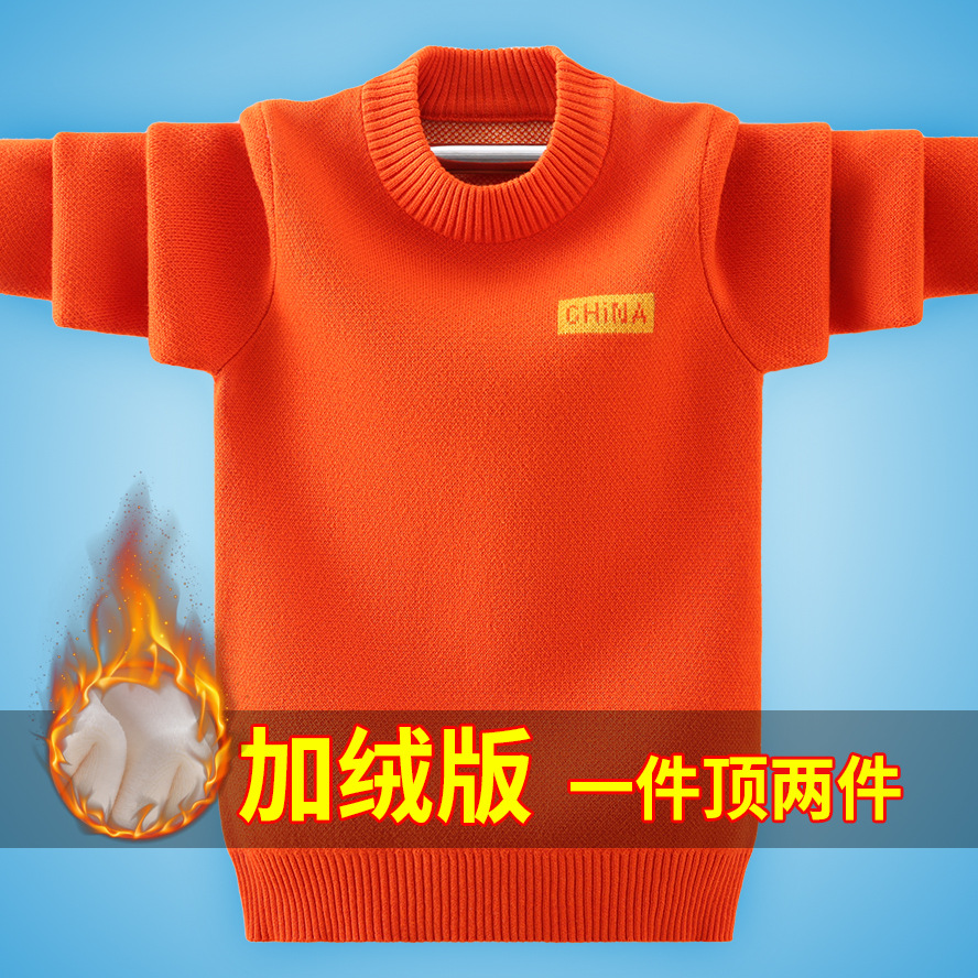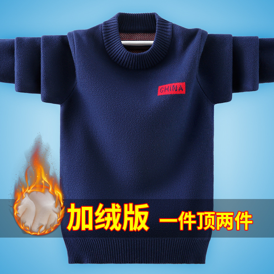 소년 스웨터 가을과 겨울 2023 새로운 인기있는 서양식 어린이 스웨터 기모 중대형 아동면 스웨터스토어 가기