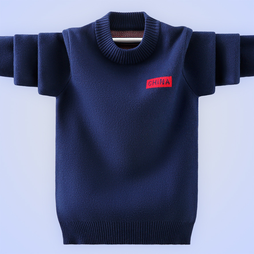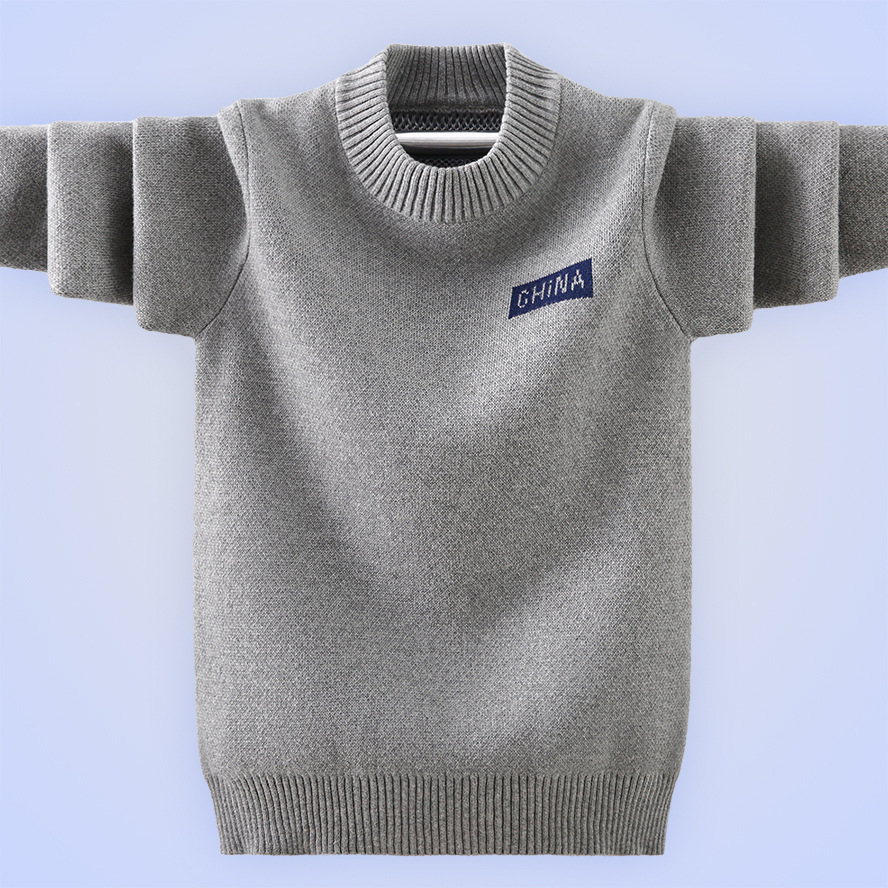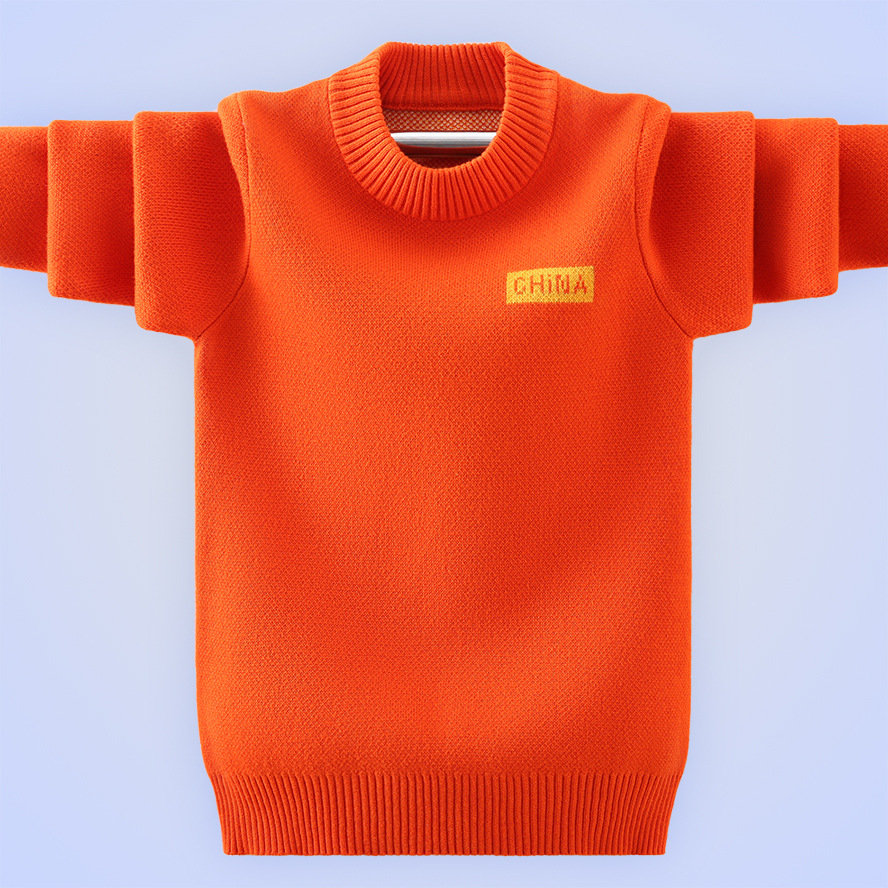 소년 스웨터 가을과 겨울 2023 새로운 인기있는 서양식 어린이 스웨터 기모 중대형 아동면 스웨터