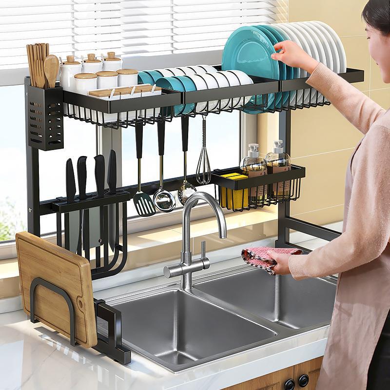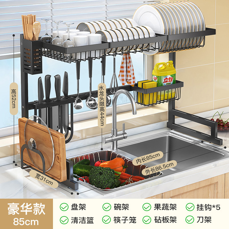 국경 간 뜨거운 판매 스테인레스 스틸 스토리지 랙 싱크 랙 수도꼭지 스토리지 랙 그릇 접시 칼 배수 랙 커팅 보드 랙