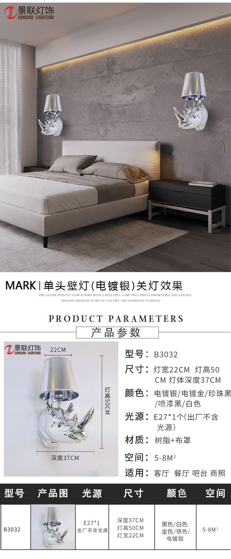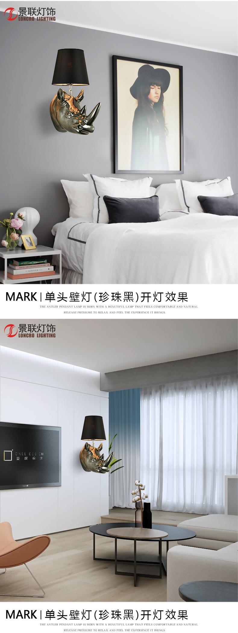 [도매] 미국식 컨트리 스타일 코뿔소 머리 벽등 거실 침실등 유럽식 벽등 바 ktv 가정용 북유럽 스타일