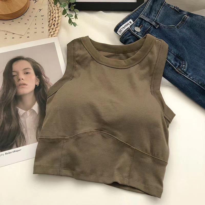 가슴 패드가 있는 여성용 미니 탱크탑, 이너웨어 또는 아우터웨어로 착용 가능, 독특한 짧은 스타일, 베이직한 패션, 다용도, I자형스토어 가기