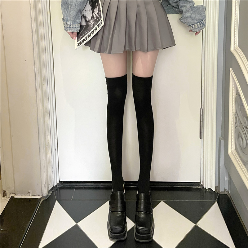 여름 얇은 압력 스키니 다리 흰색 무릎 위 스타킹 블랙 커프 스타킹 여성 여름 중간 jk 하프 인스토어 가기