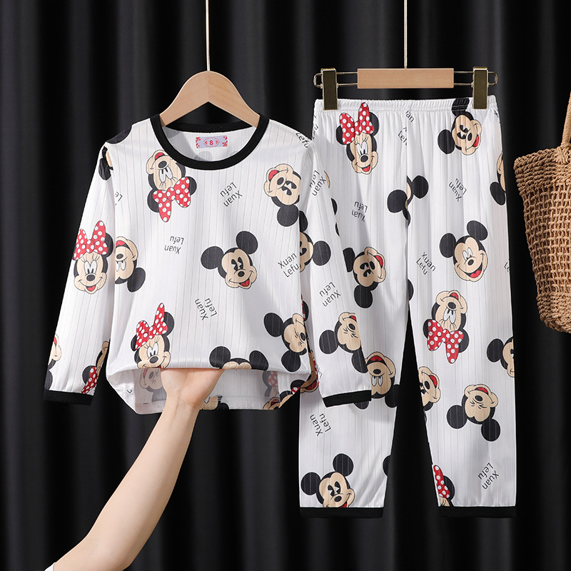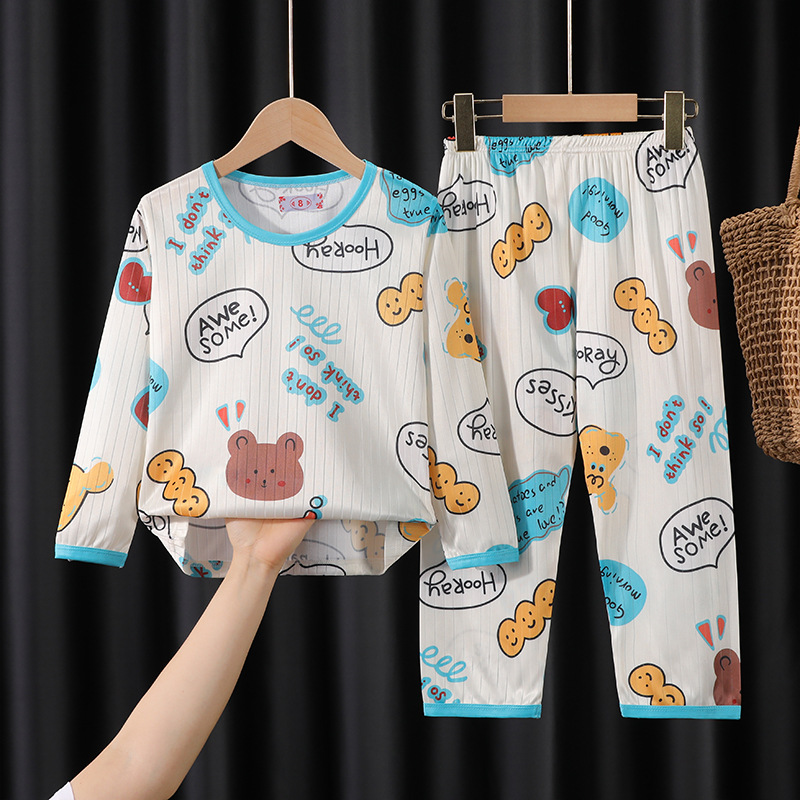 어린이 잠옷 아기 속옷 세트 피트 밀크 실크 가을 옷 긴 바지 소년 소녀 잠옷 홈 의류 도매