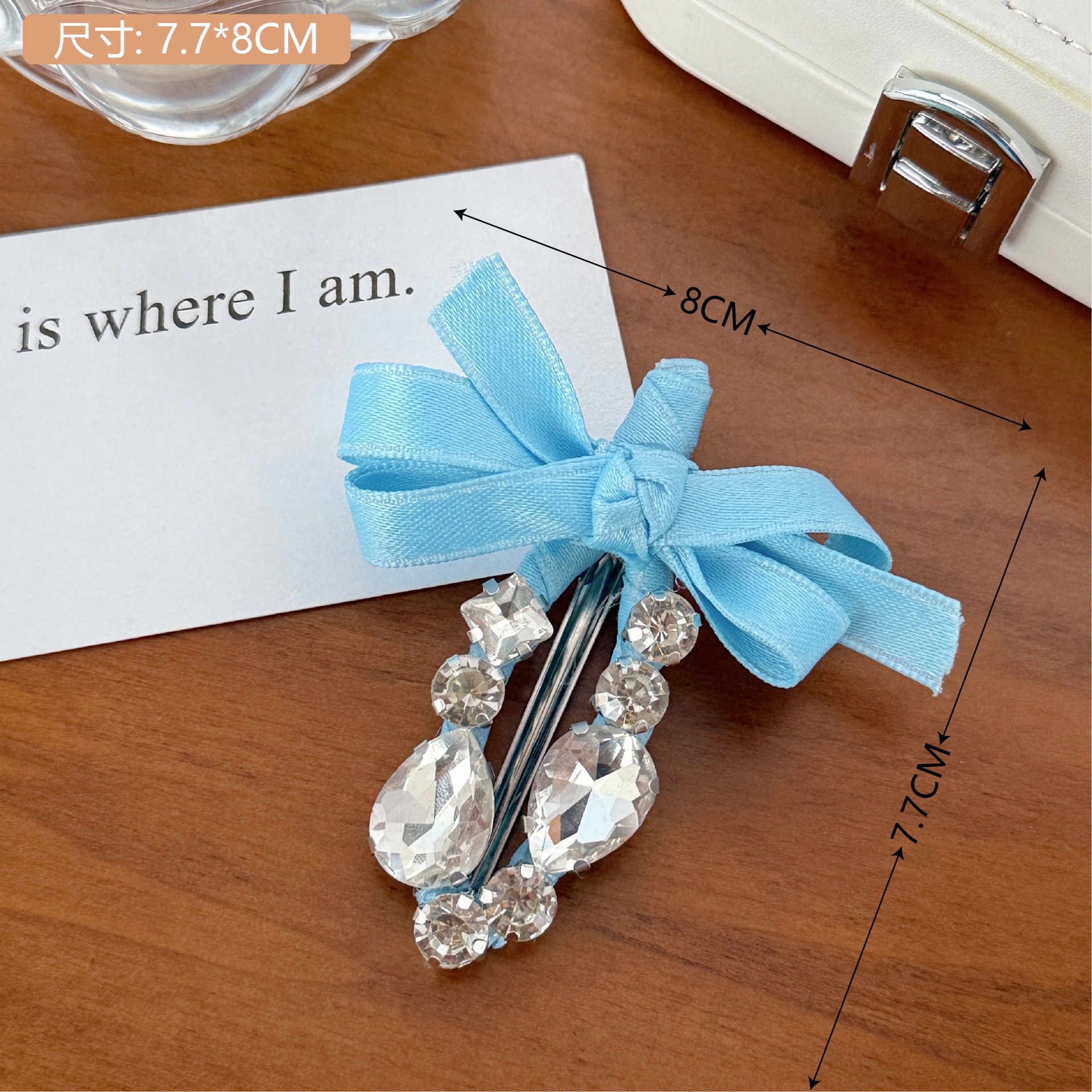 • 4#블루 리본 라인스톤 머리핀