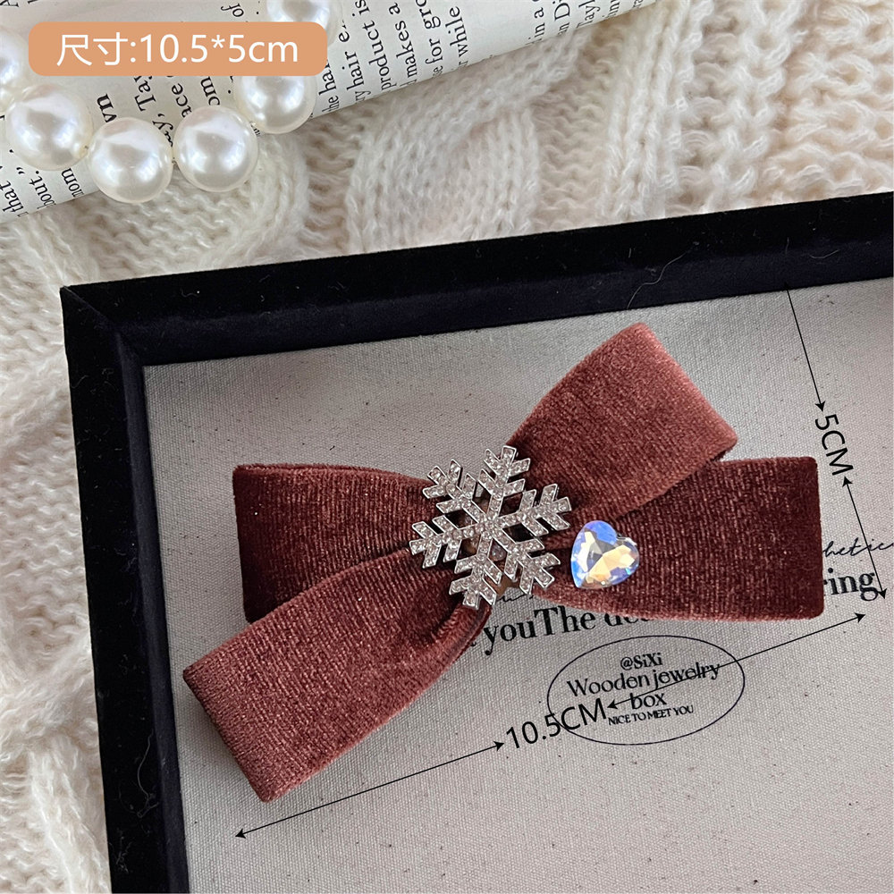 • 2#눈송이 라인스톤 브라운 리본 머리핀